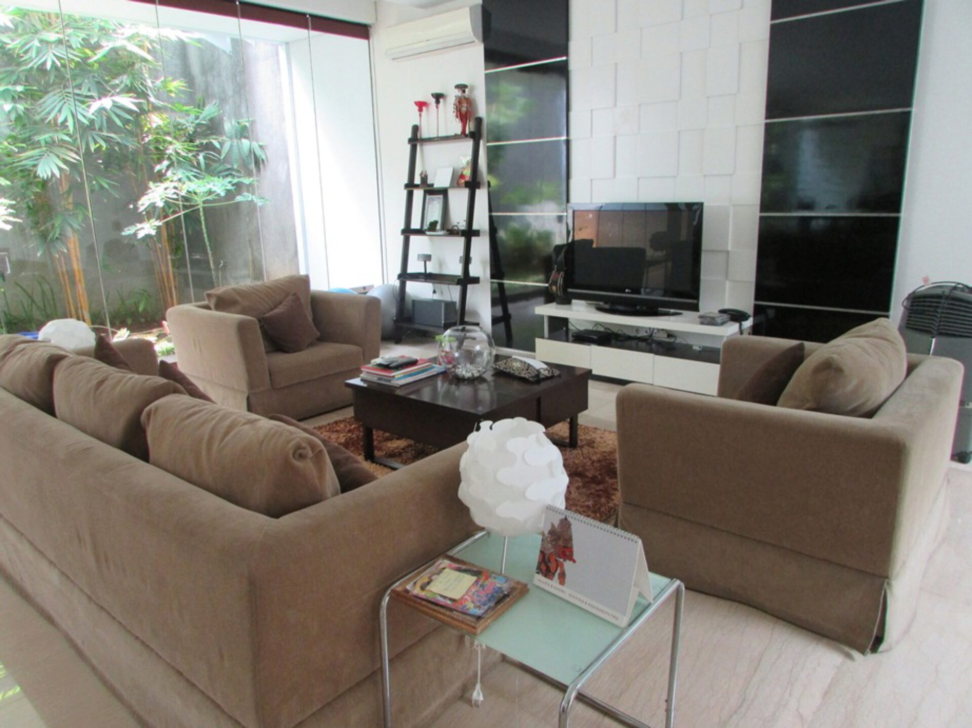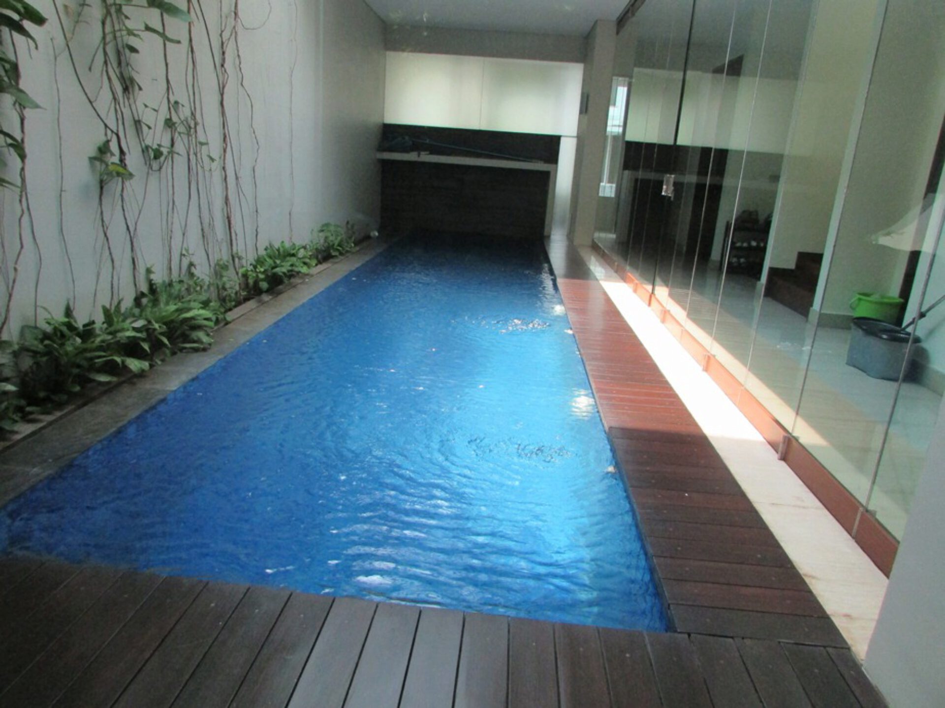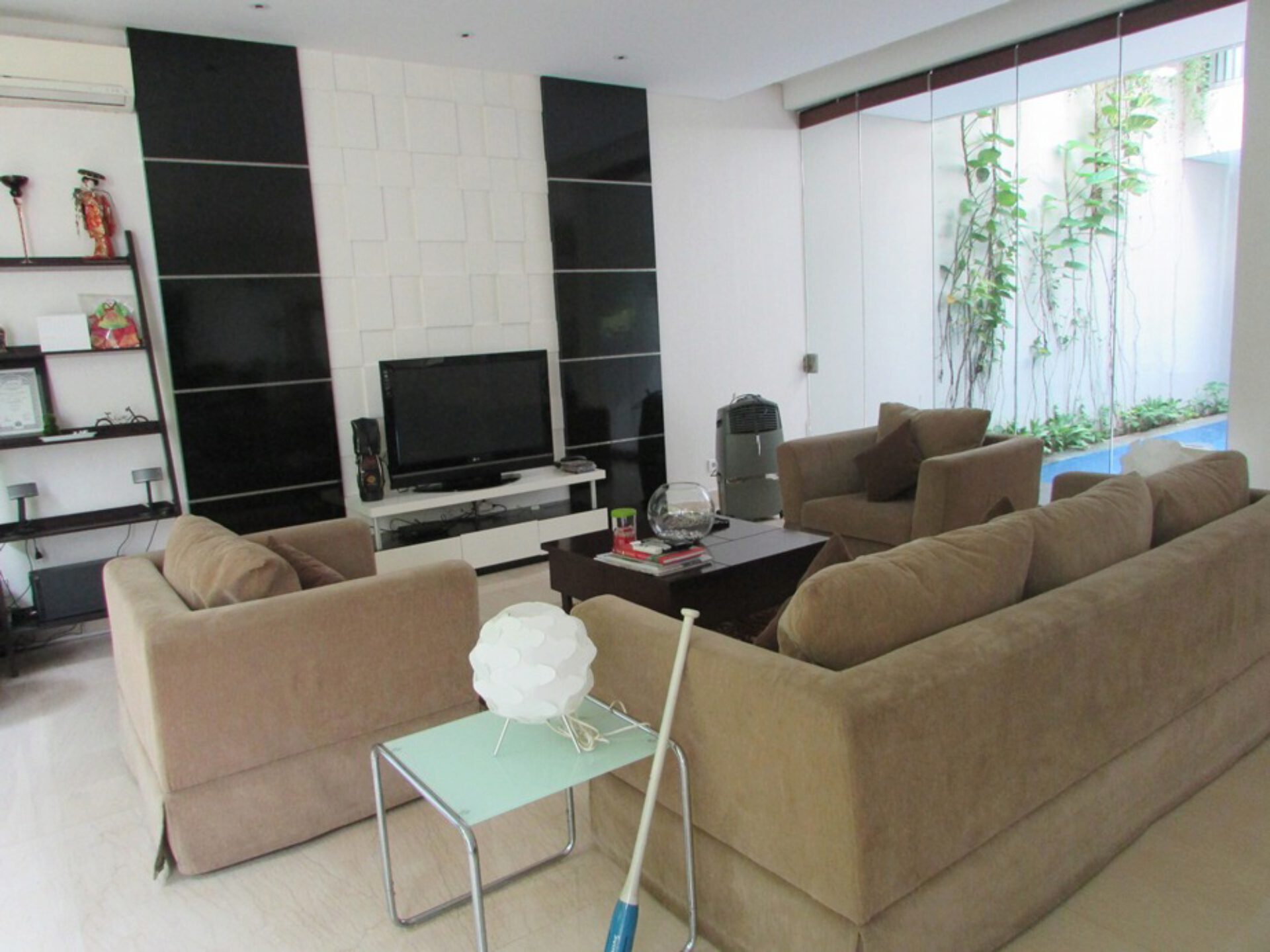 A 3 storey, 5 bedroom, compound house located in Cilandak, Jakarta with 5 bathrooms, a pool and a yard.