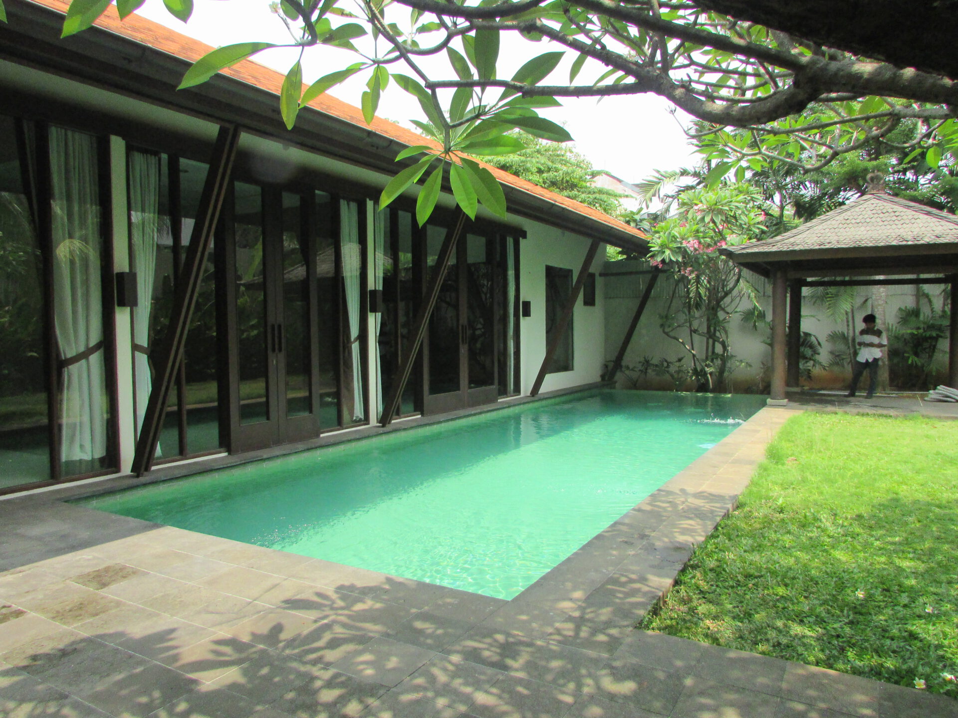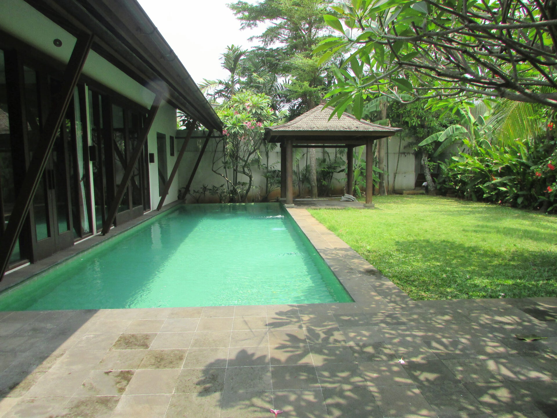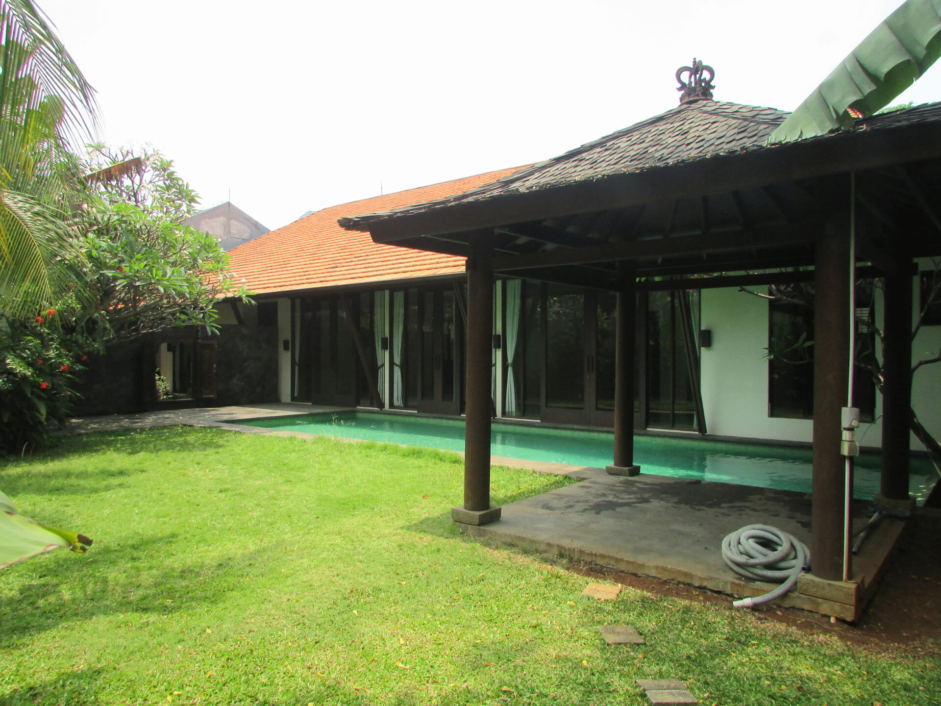 A 1 storey, 4 bedroom, stand alone house located in Cilandak, Jakarta with 3 bathrooms, 1 study, a pool and a yard.