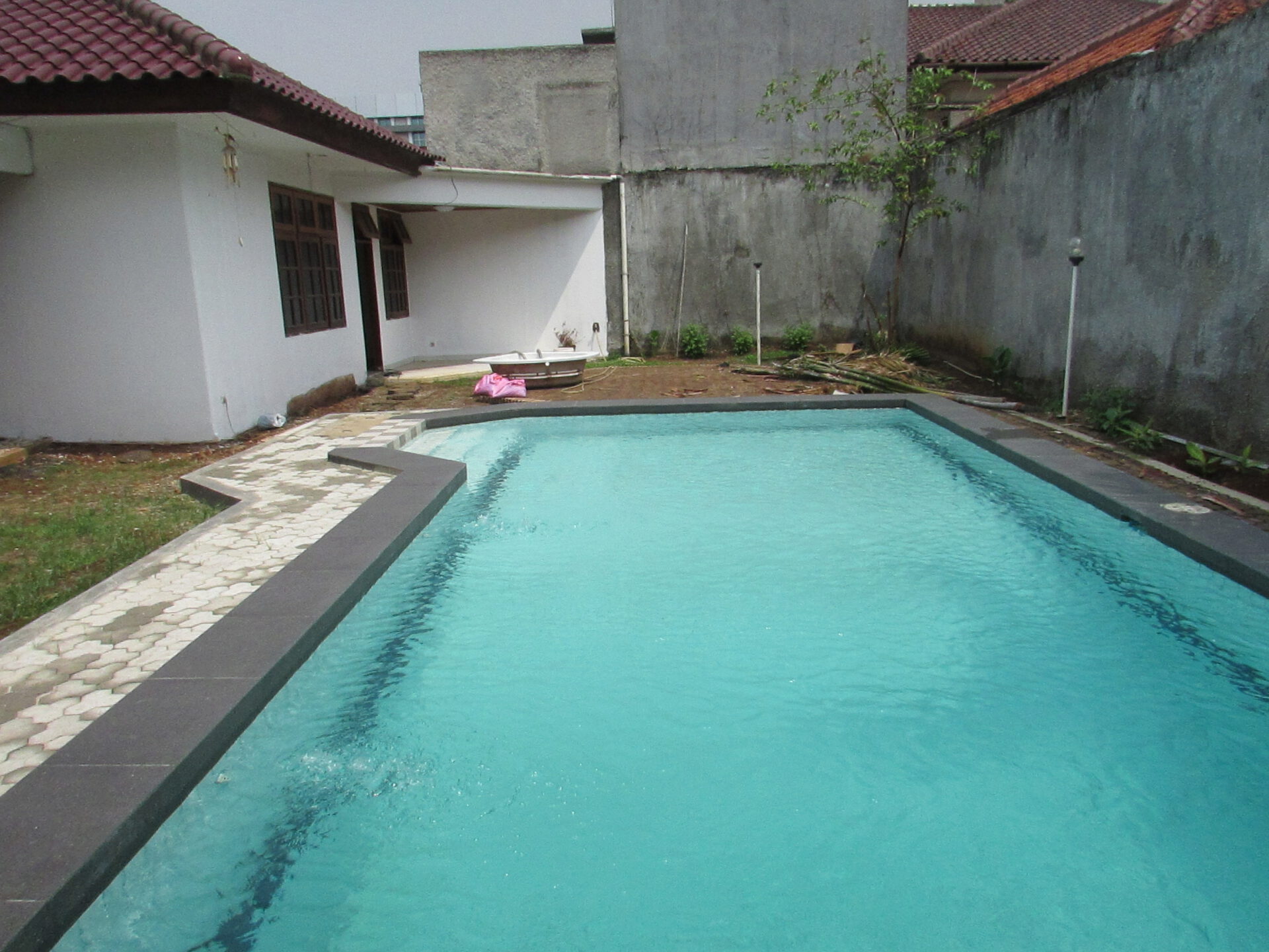 A 1 storey, 4 bedroom, stand alone house located in Cilandak, Jakarta with 3 bathrooms, a pool and a yard.