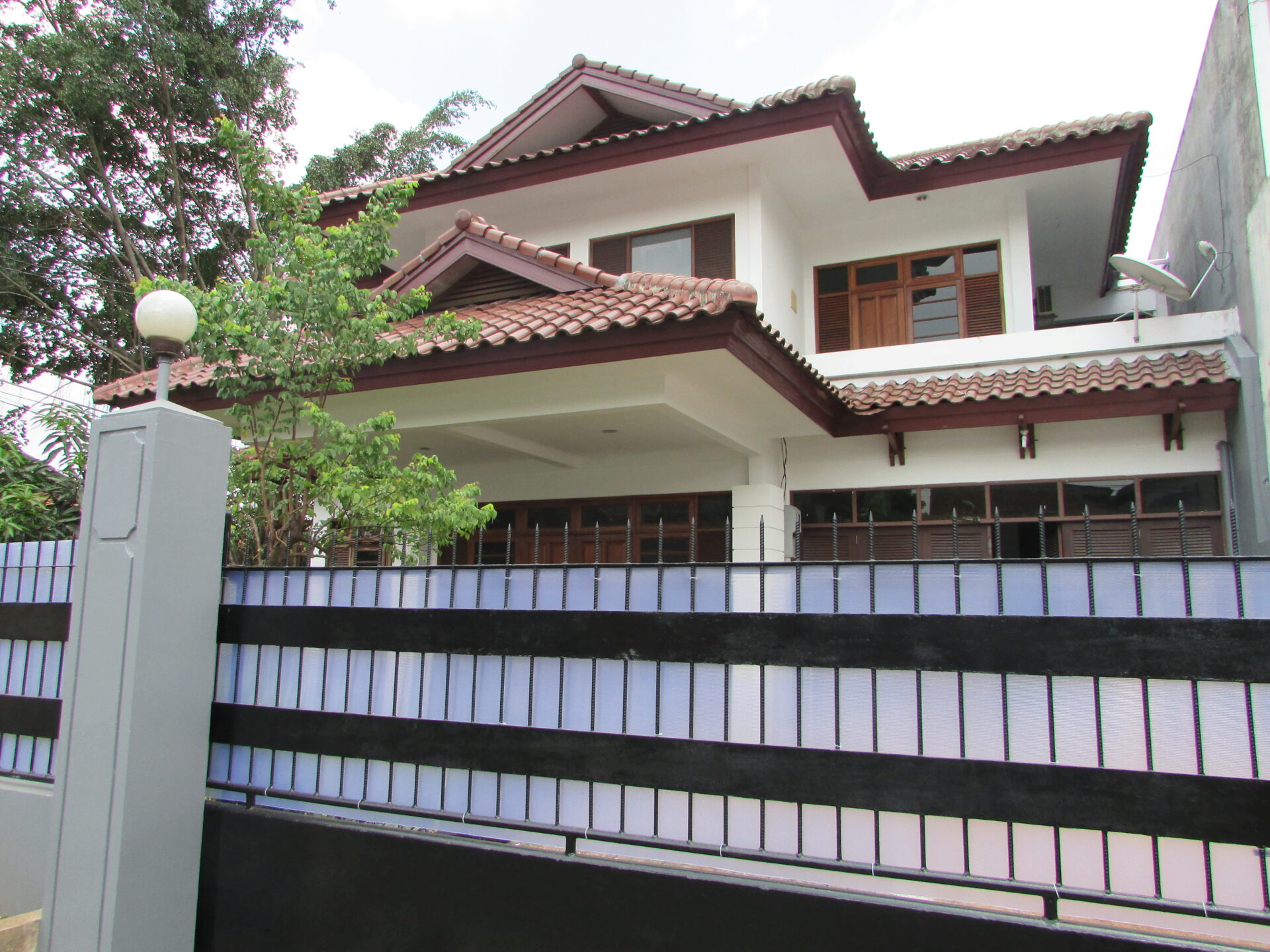 A 2 storey, 4 bedroom, compound house located in Cipete, Jakarta with 3 bathrooms, 1 study, a pool and a yard.