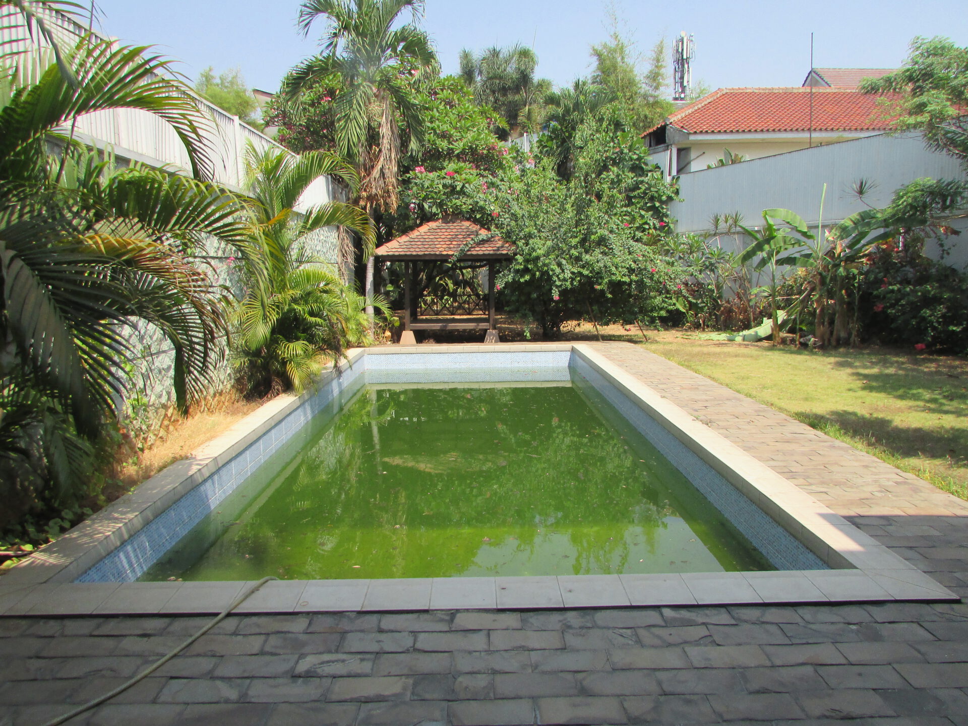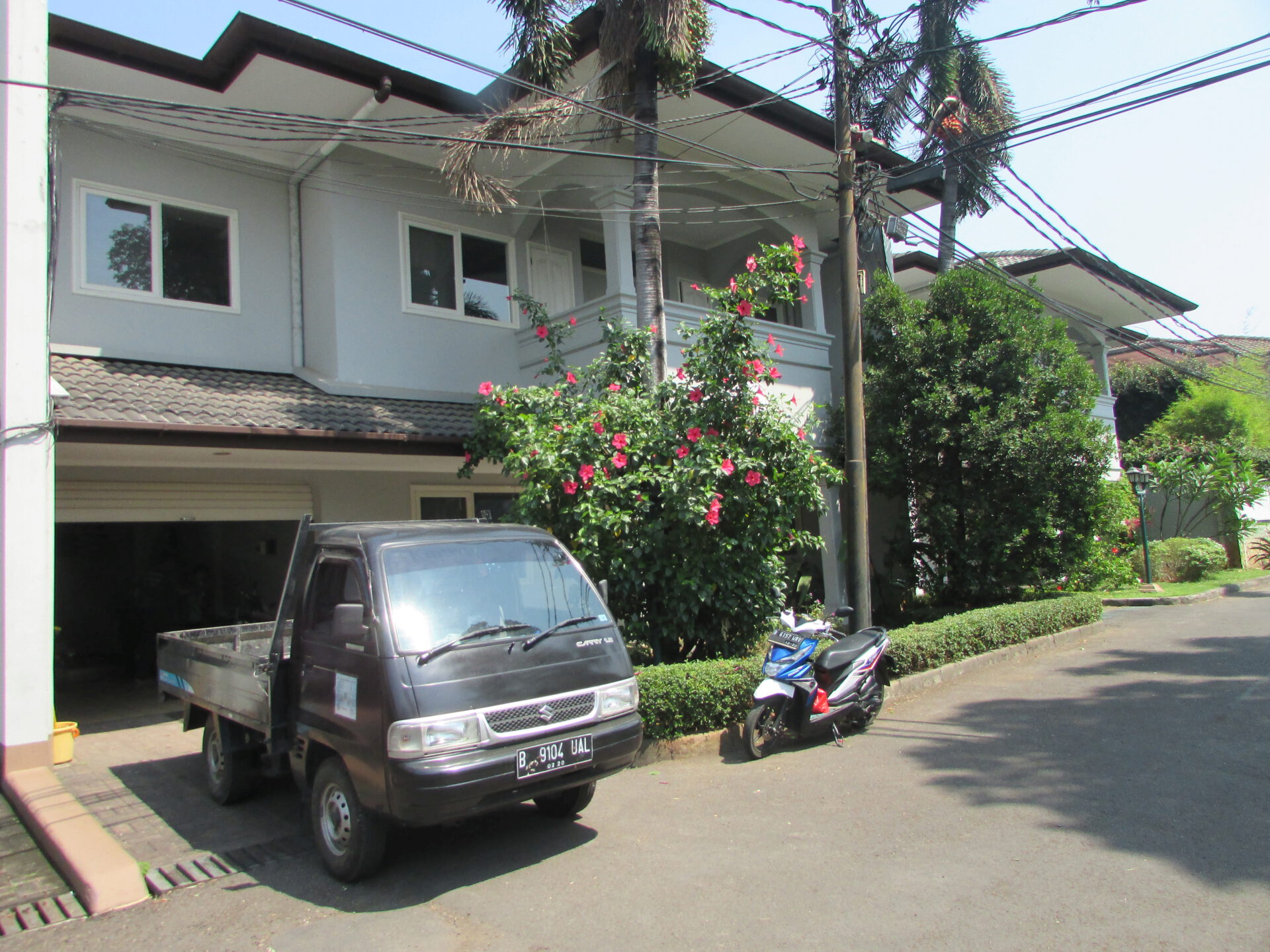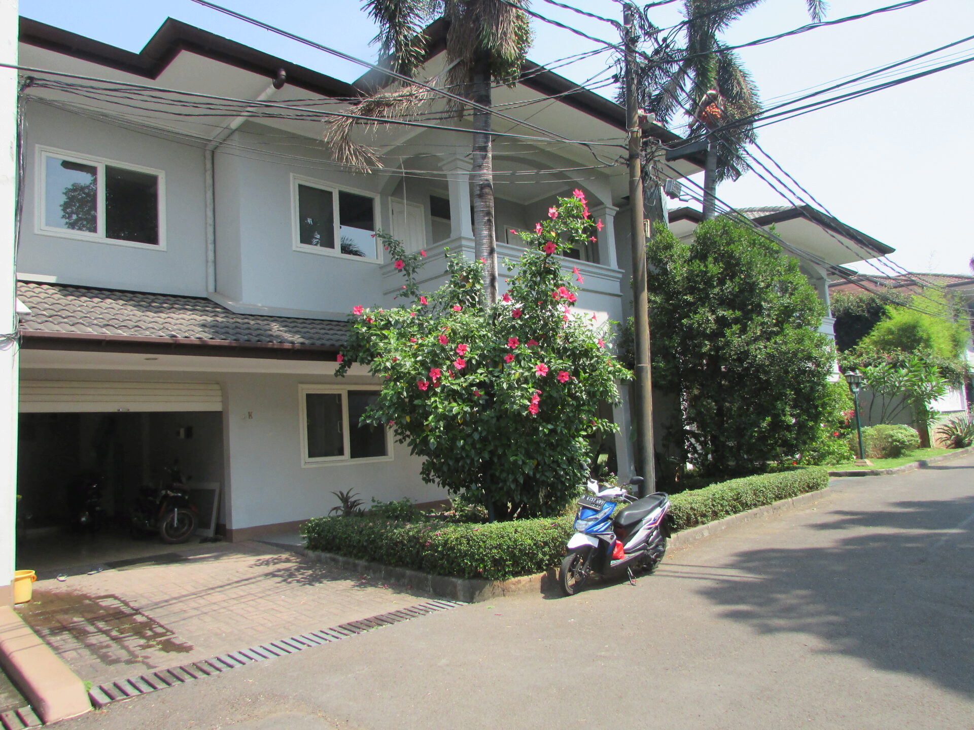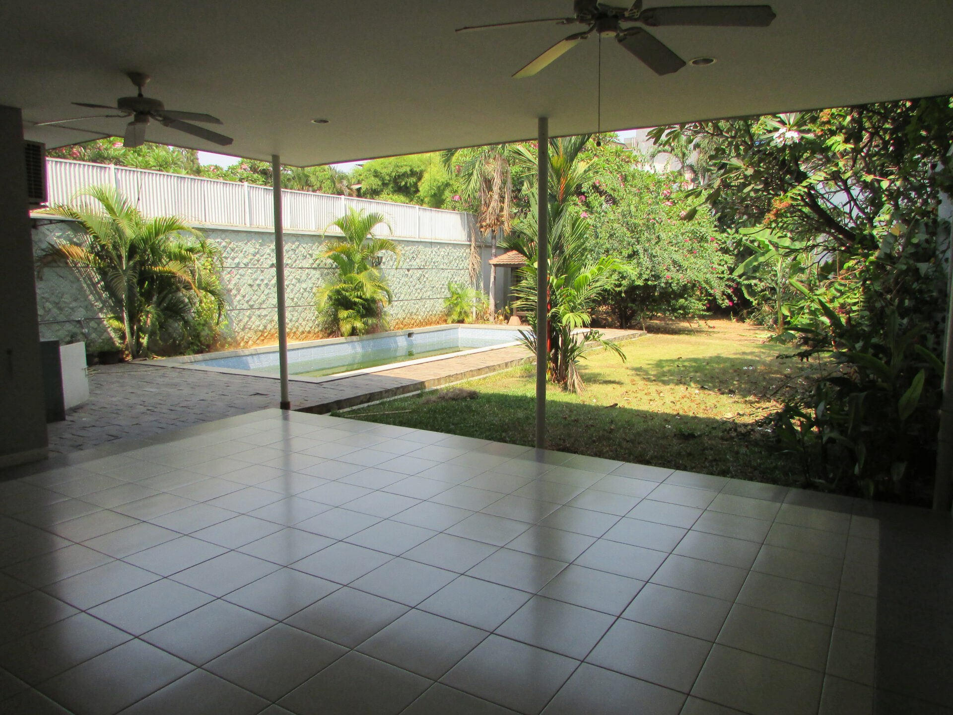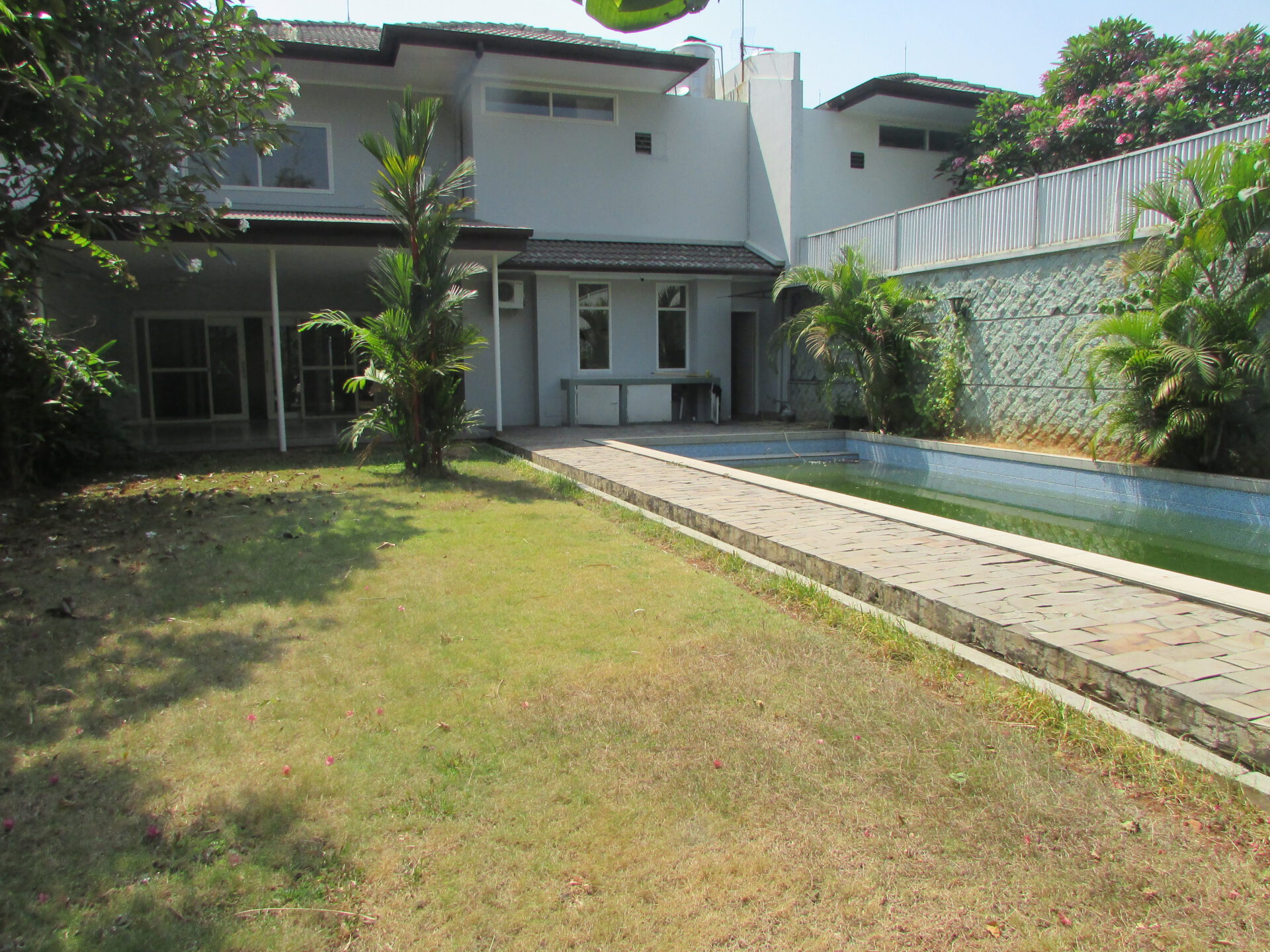 A 2 storey, 4 bedroom, compound house located in Cipete, Jakarta with 3 bathrooms, 1 study, a pool and a yard.