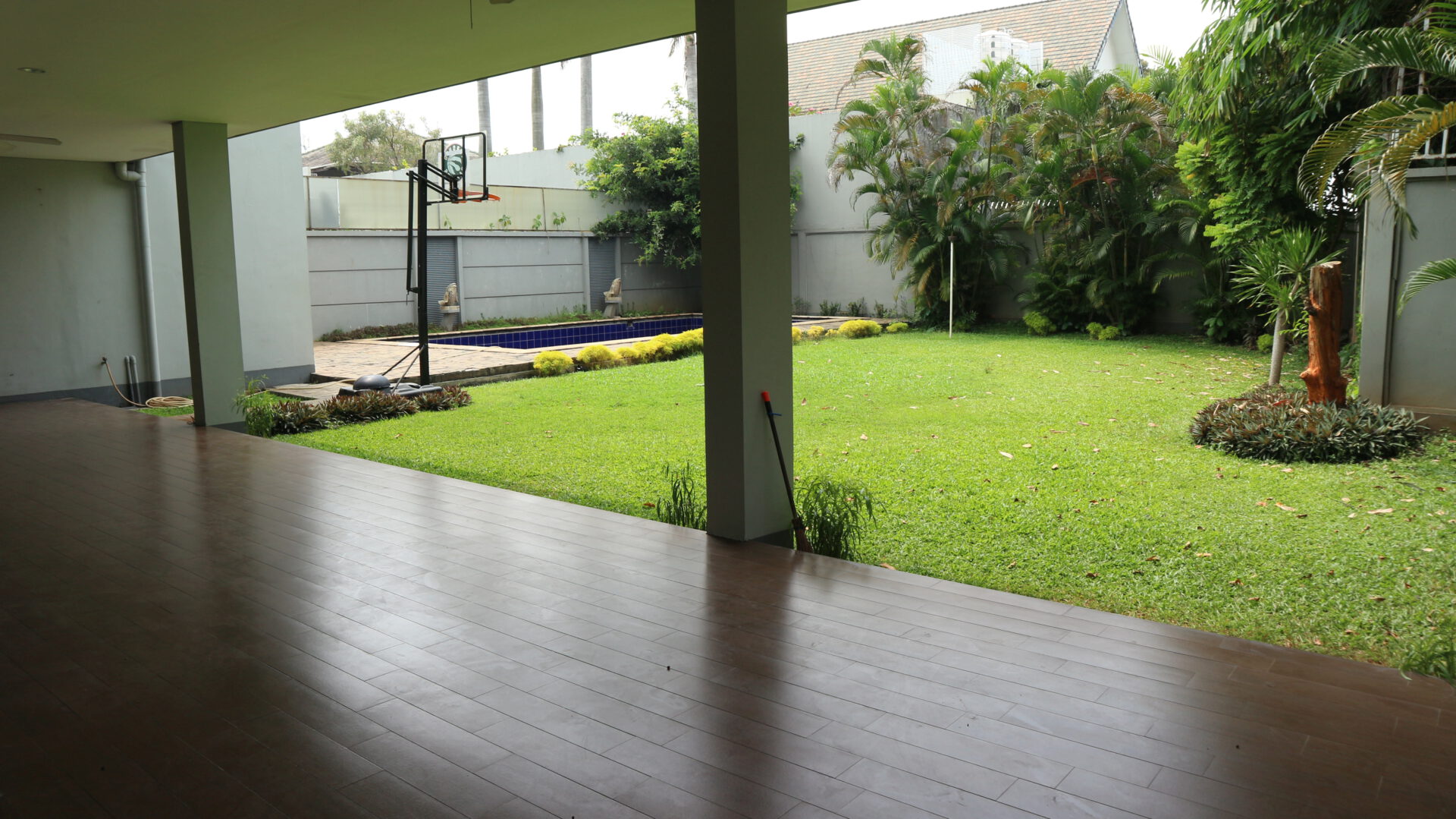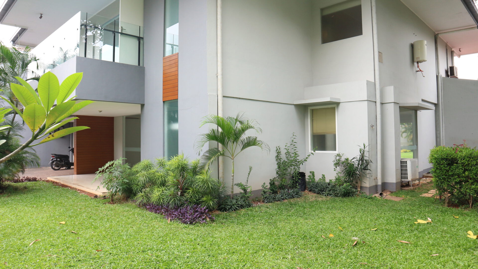 A 2 storey, 4 bedroom, compound house located in Cipete, Jakarta with 4 bathrooms, 1 study, a pool and a yard.