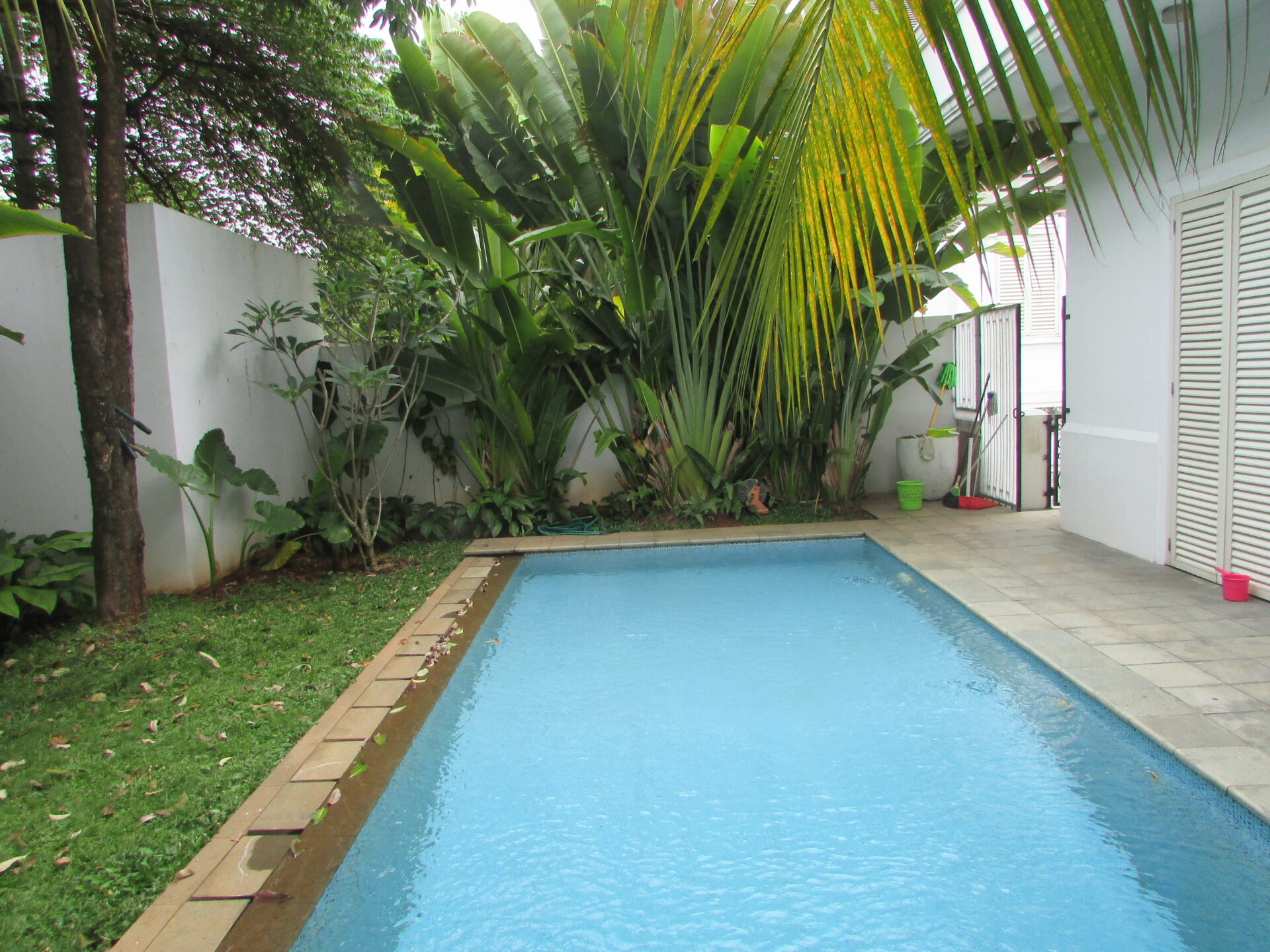 A 2 storey, 3 bedroom, compound house located in Kemang Barat, Jakarta with 3 bathrooms, a pool and a yard.