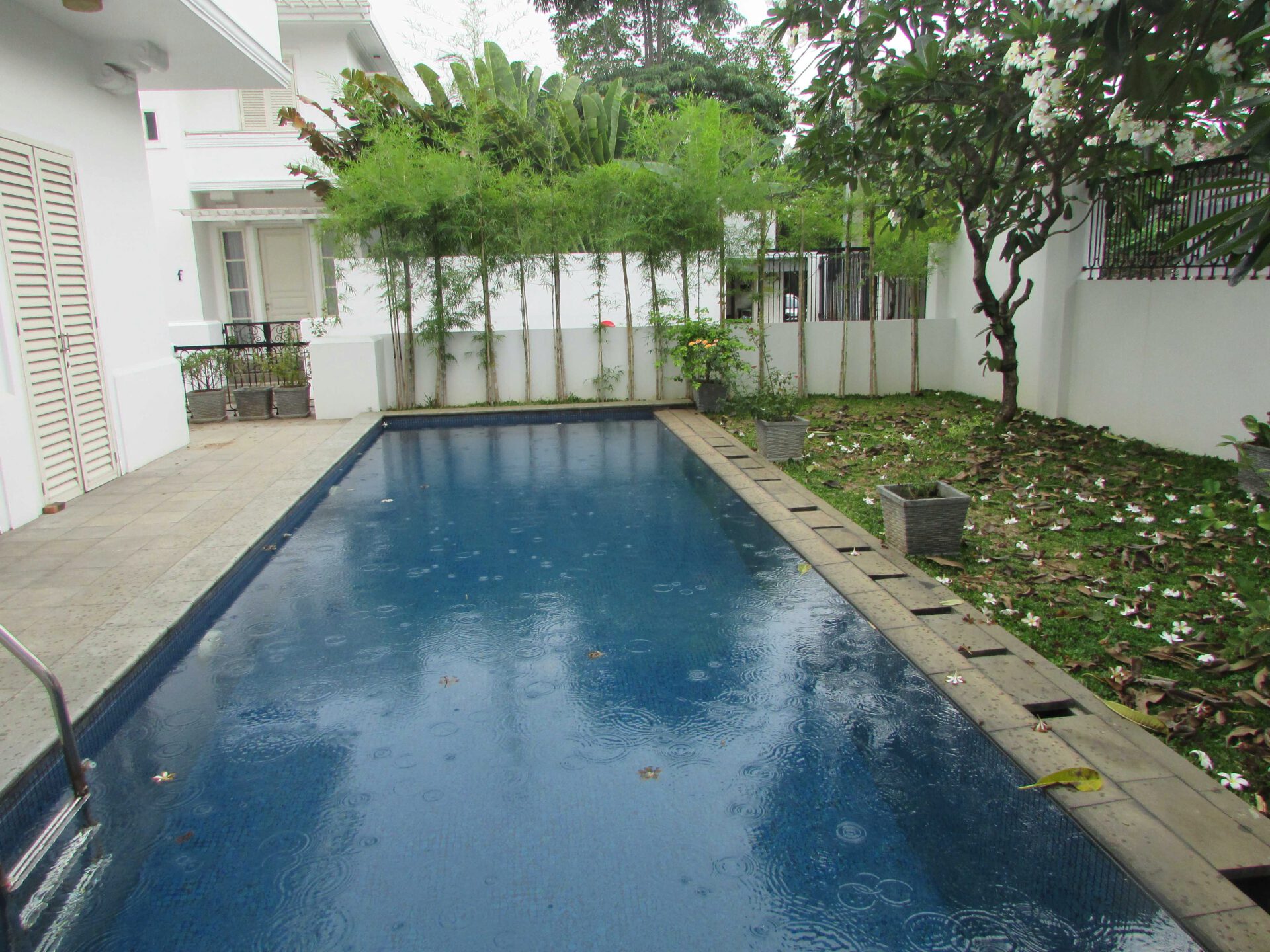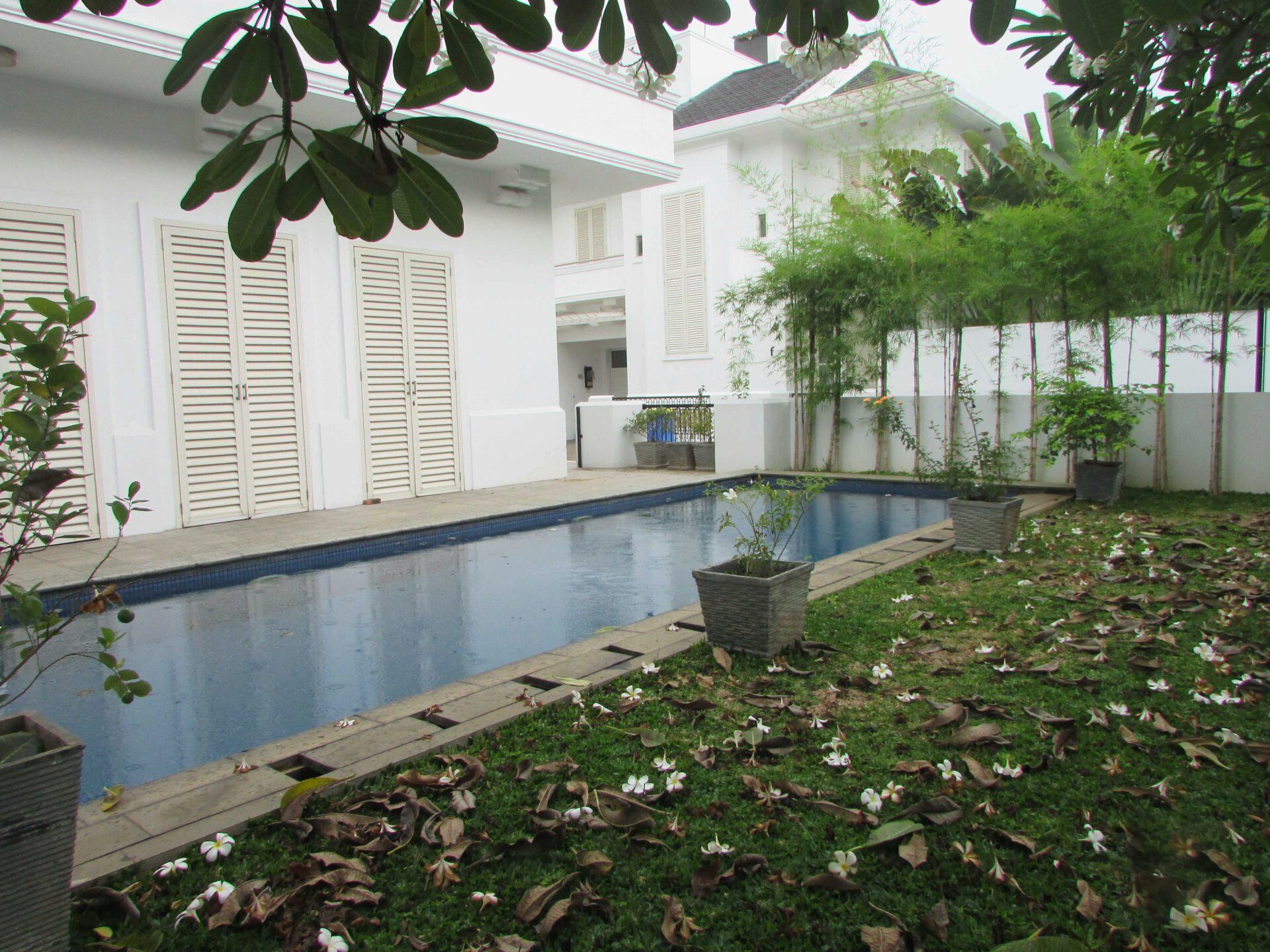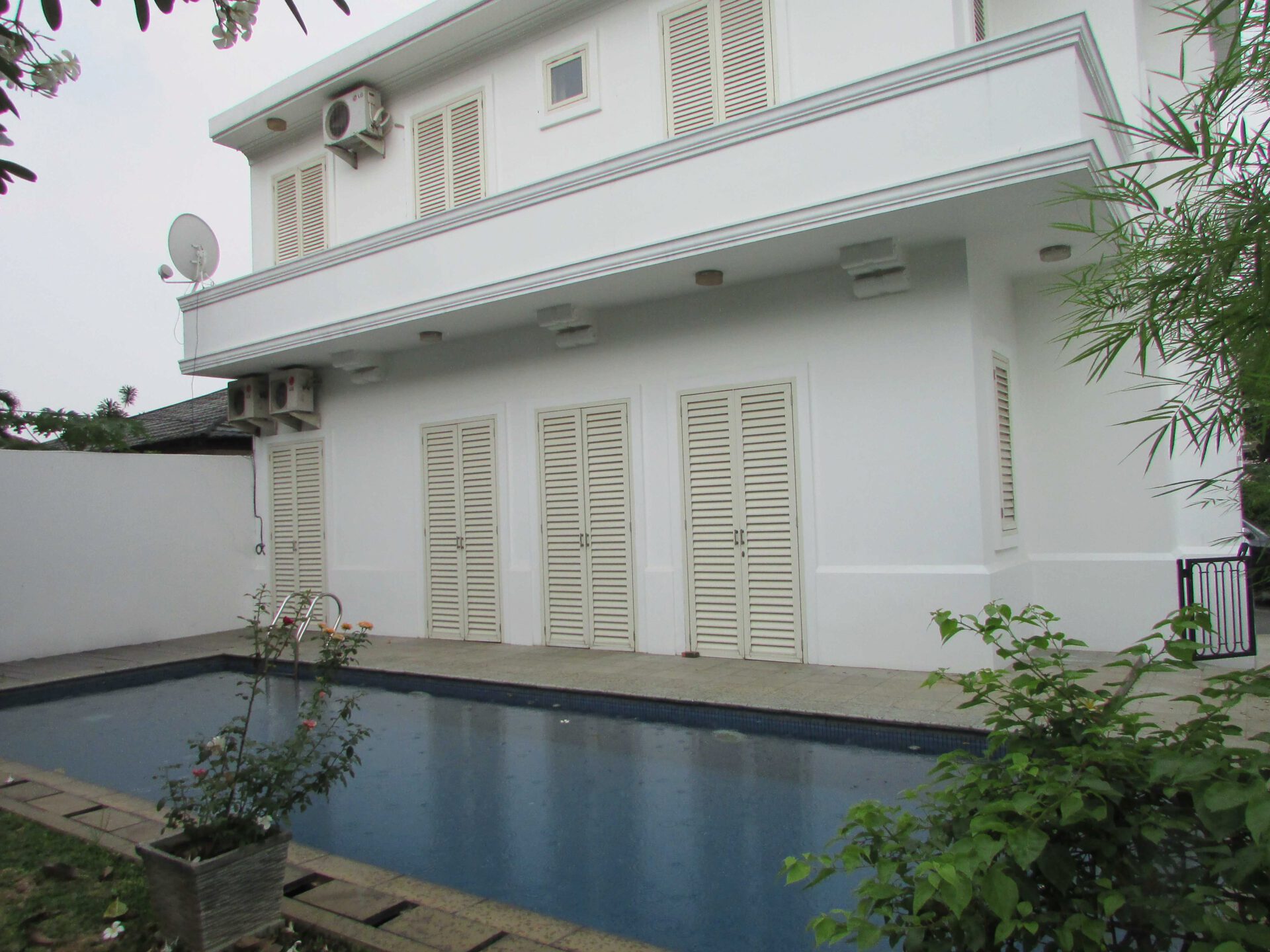 A 2 storey, 3 bedroom, compound house located in Kemang Barat, Jakarta with 3 bathrooms, a pool and a yard.