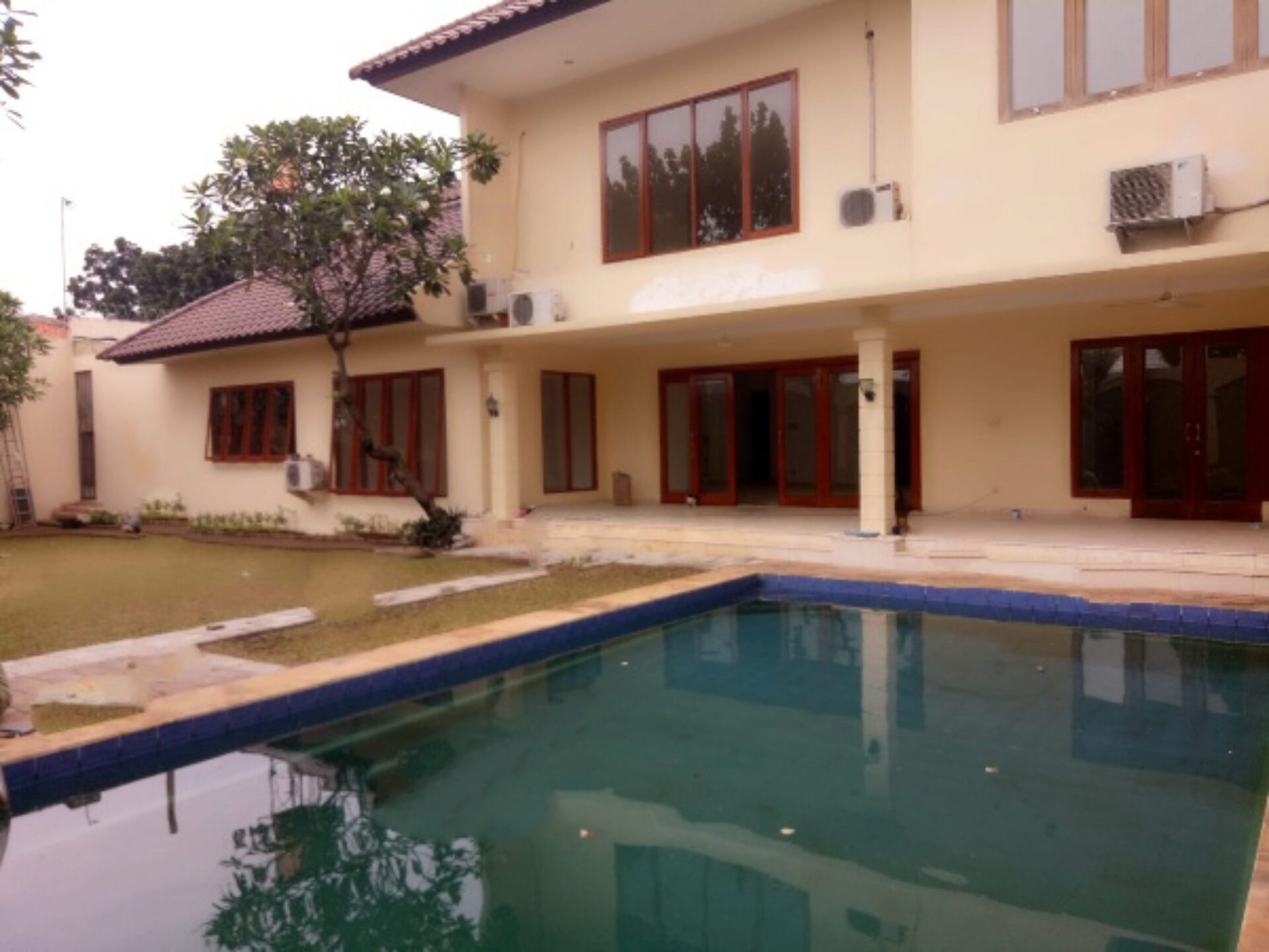 A 2 storey, 4 bedroom, stand alone house located in Kemang Barat, Jakarta with 4 bathrooms, a pool and a yard.