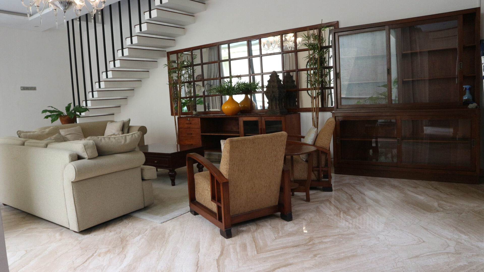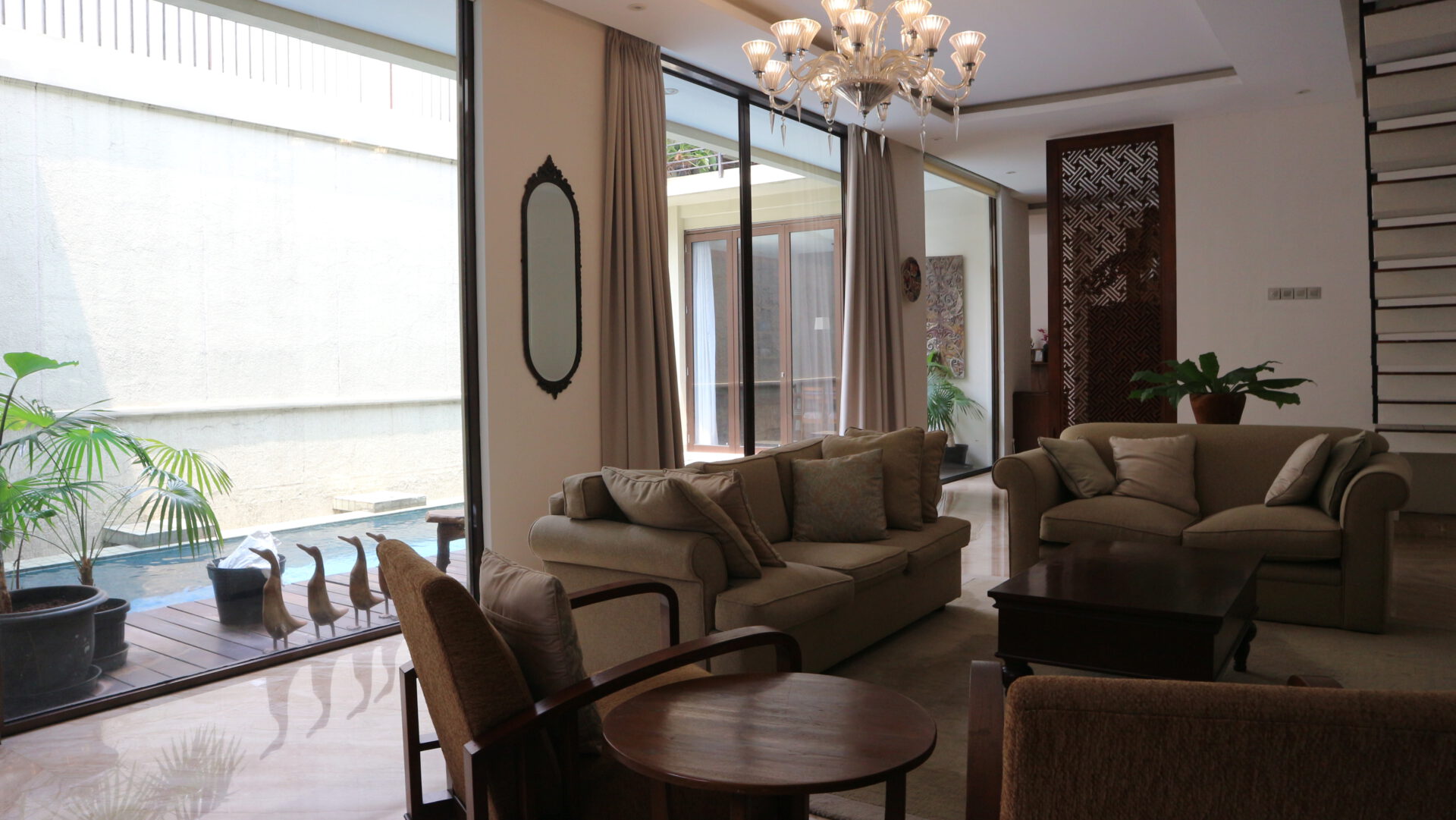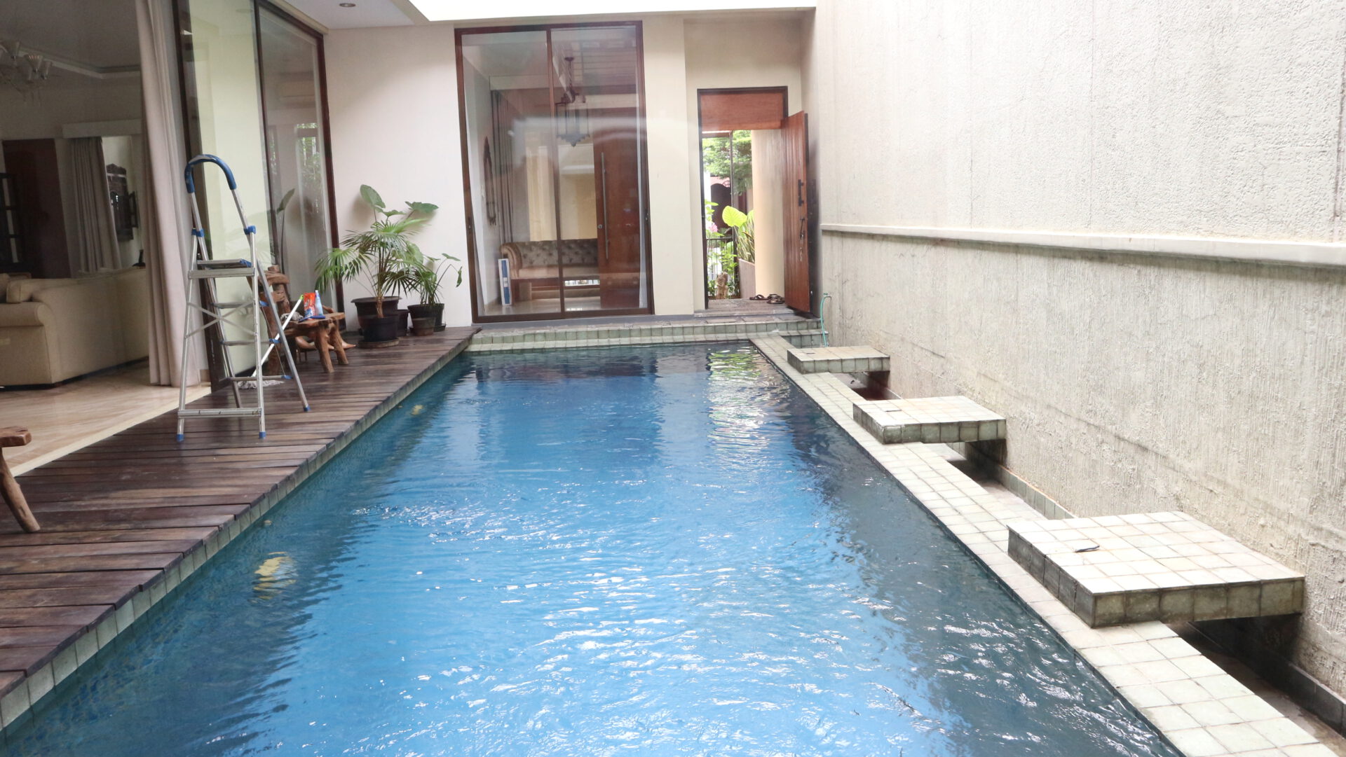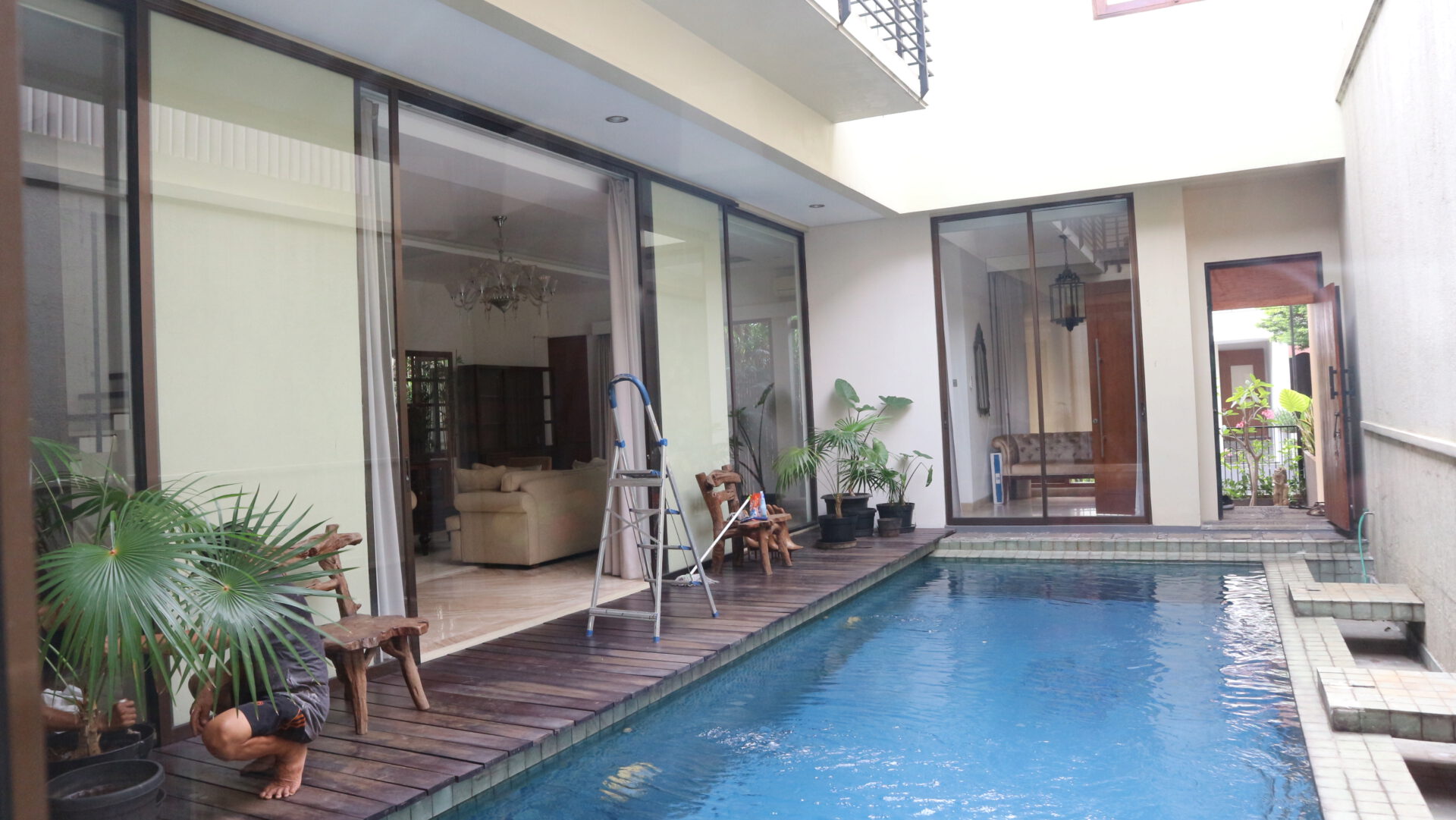 A 2 storey, 3 bedroom, compound house located in Kemang Timur, Jakarta with 3 bathrooms, 1 study and a pool.