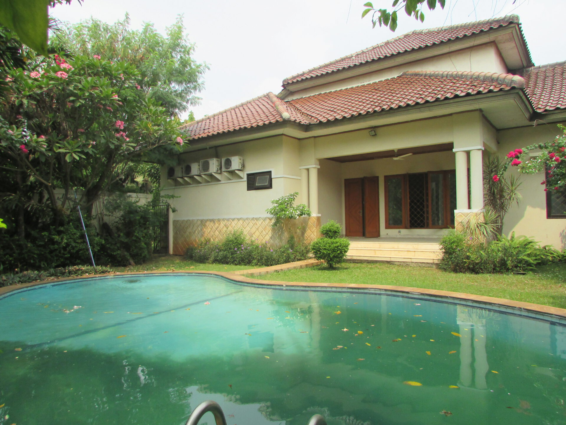 A 1 storey, 4 bedroom, compound house located in Kemang Utara, Jakarta with 3 bathrooms, a pool and a yard.