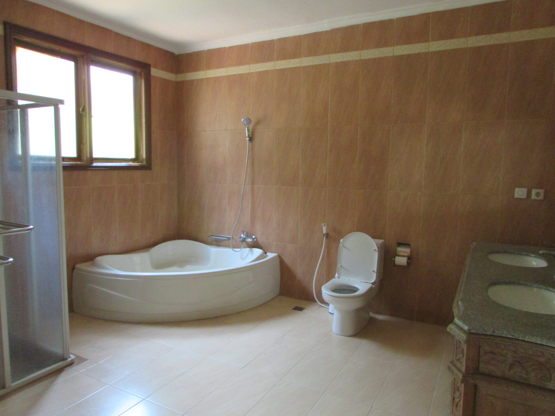 A 1 storey, 5 bedroom, stand alone house located in Kemang, Jakarta with 5 bathrooms, a pool and a yard.