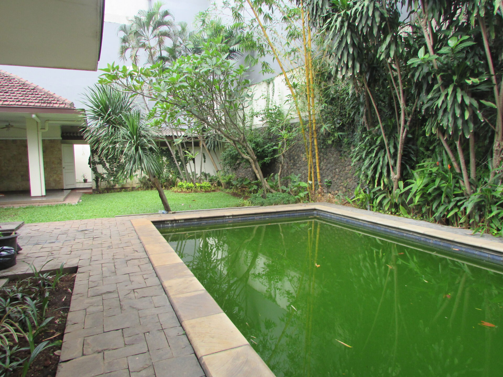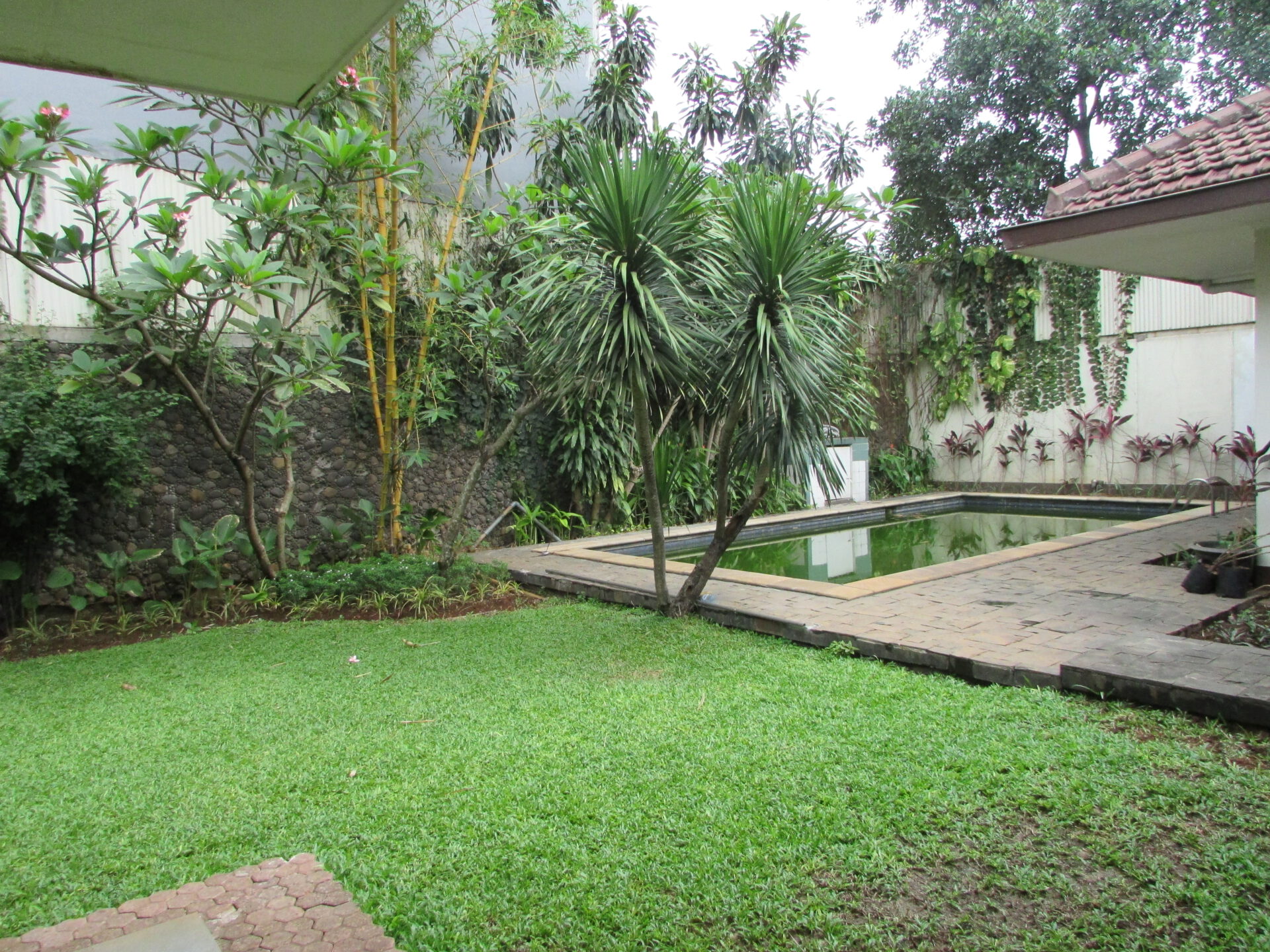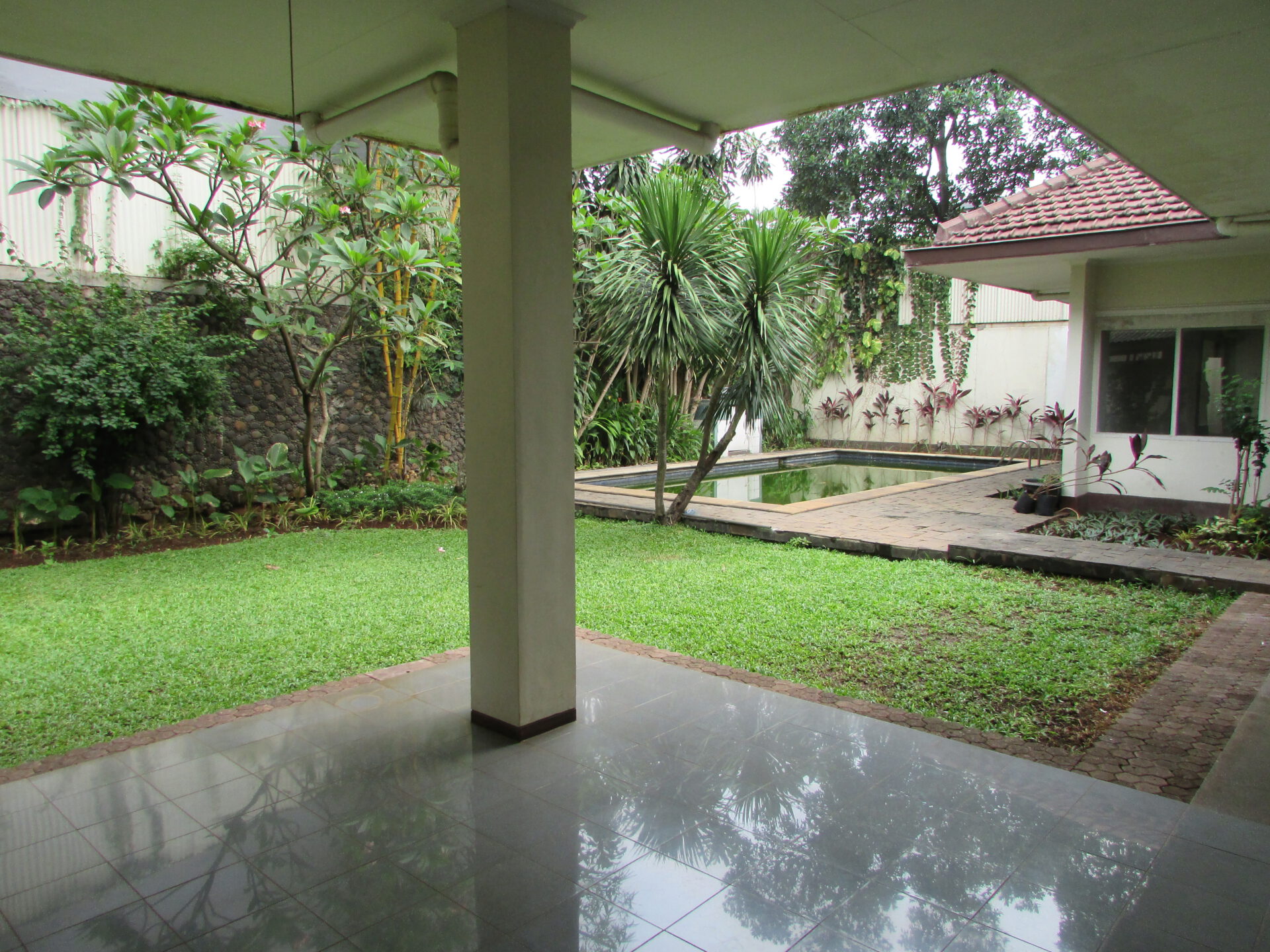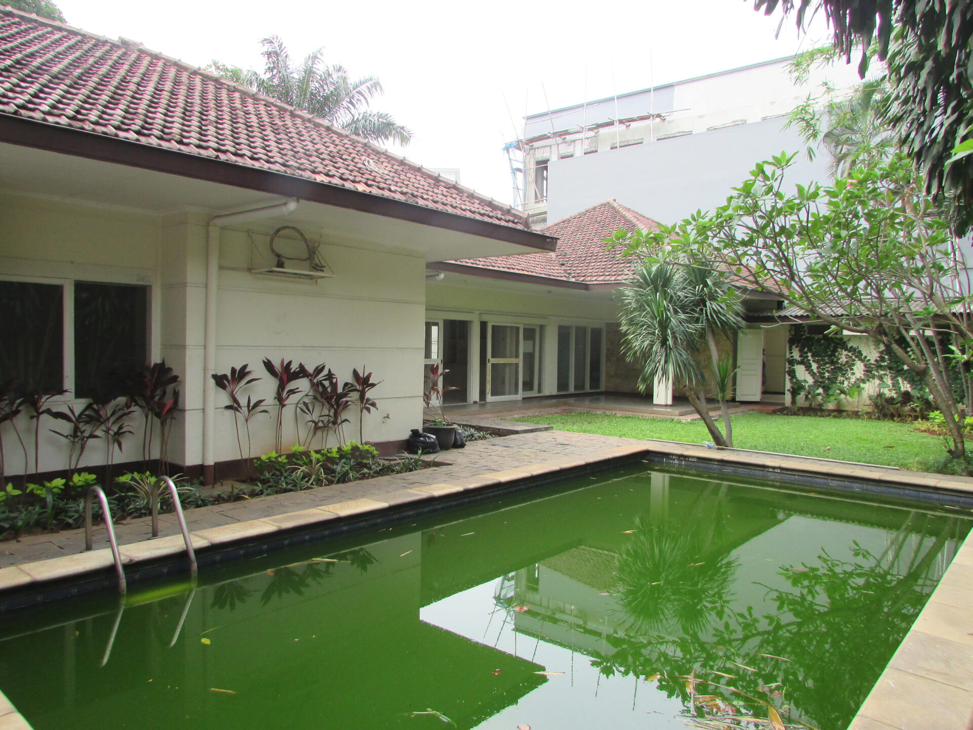 A 1 storey, 4 bedroom, stand alone house located in Kemang, Jakarta with 3 bathrooms, 1 study, a pool and a yard.