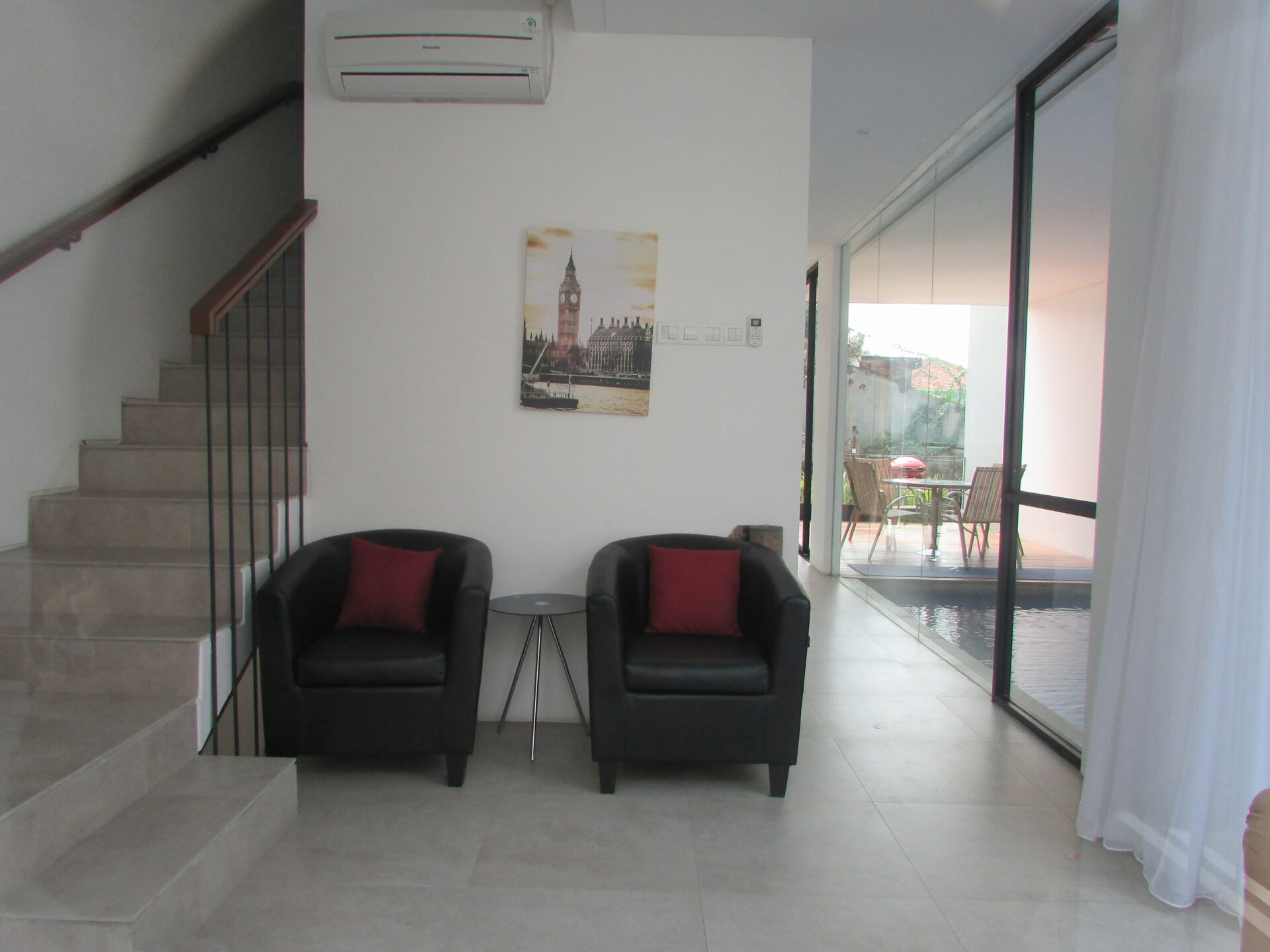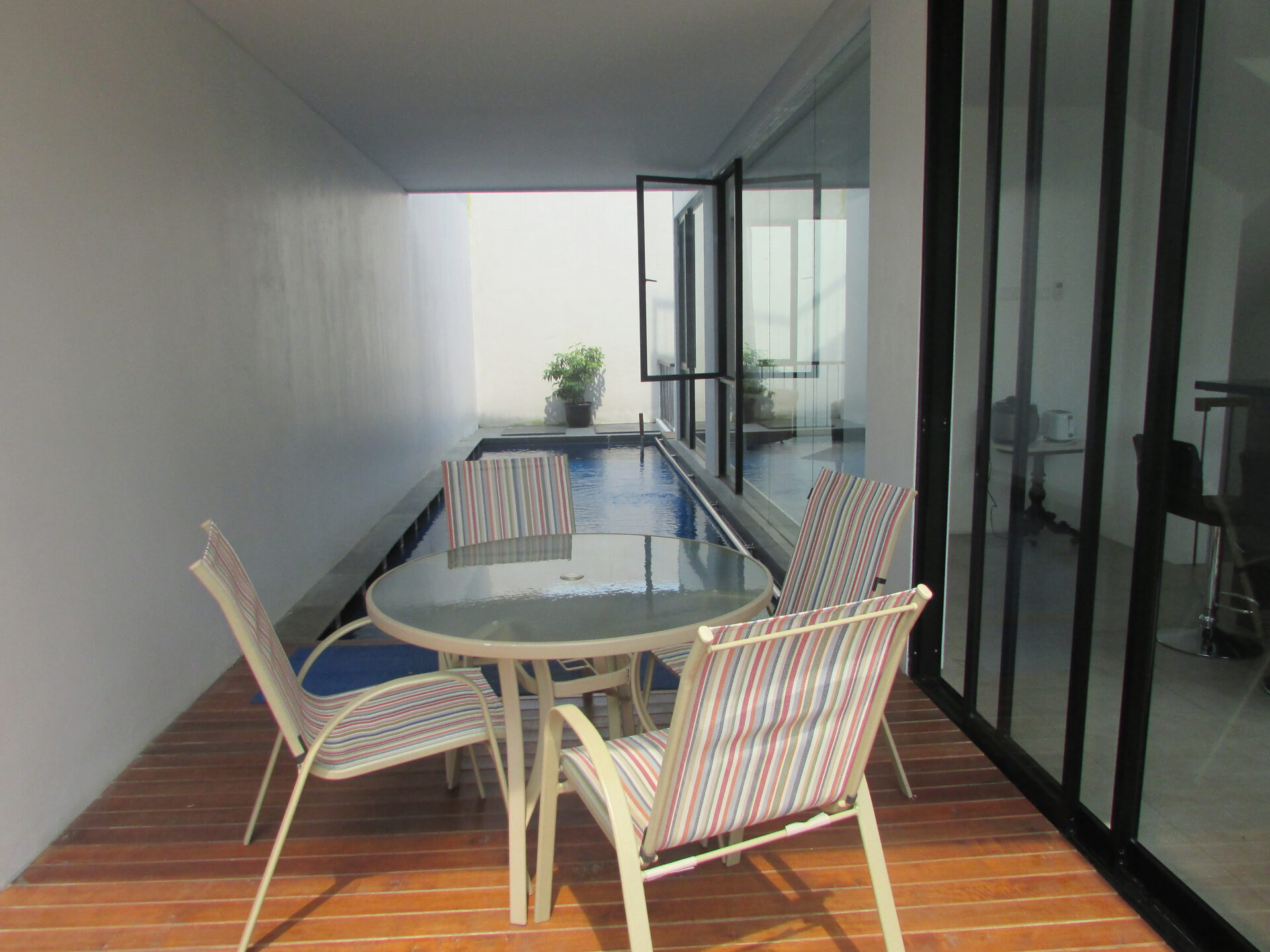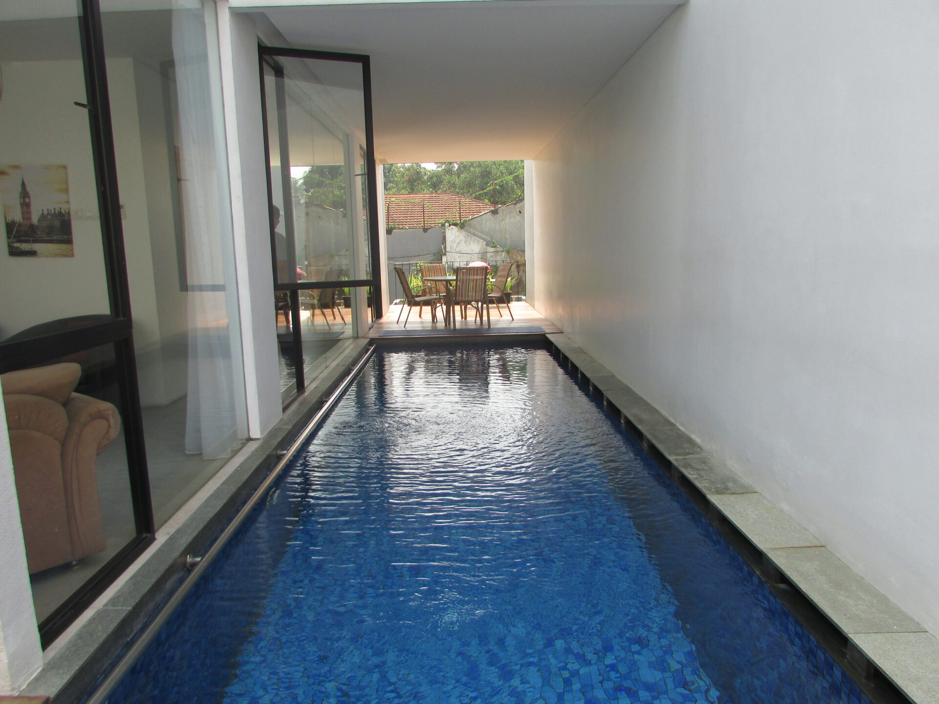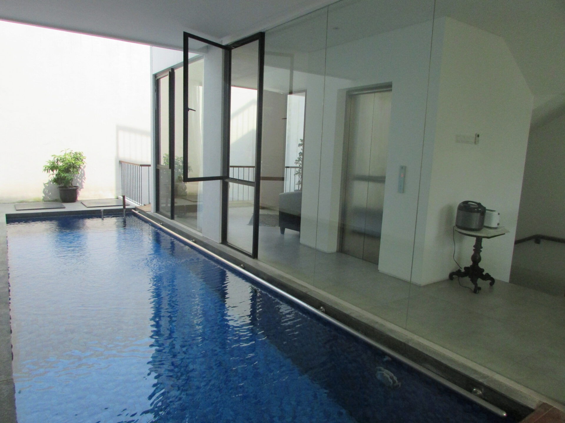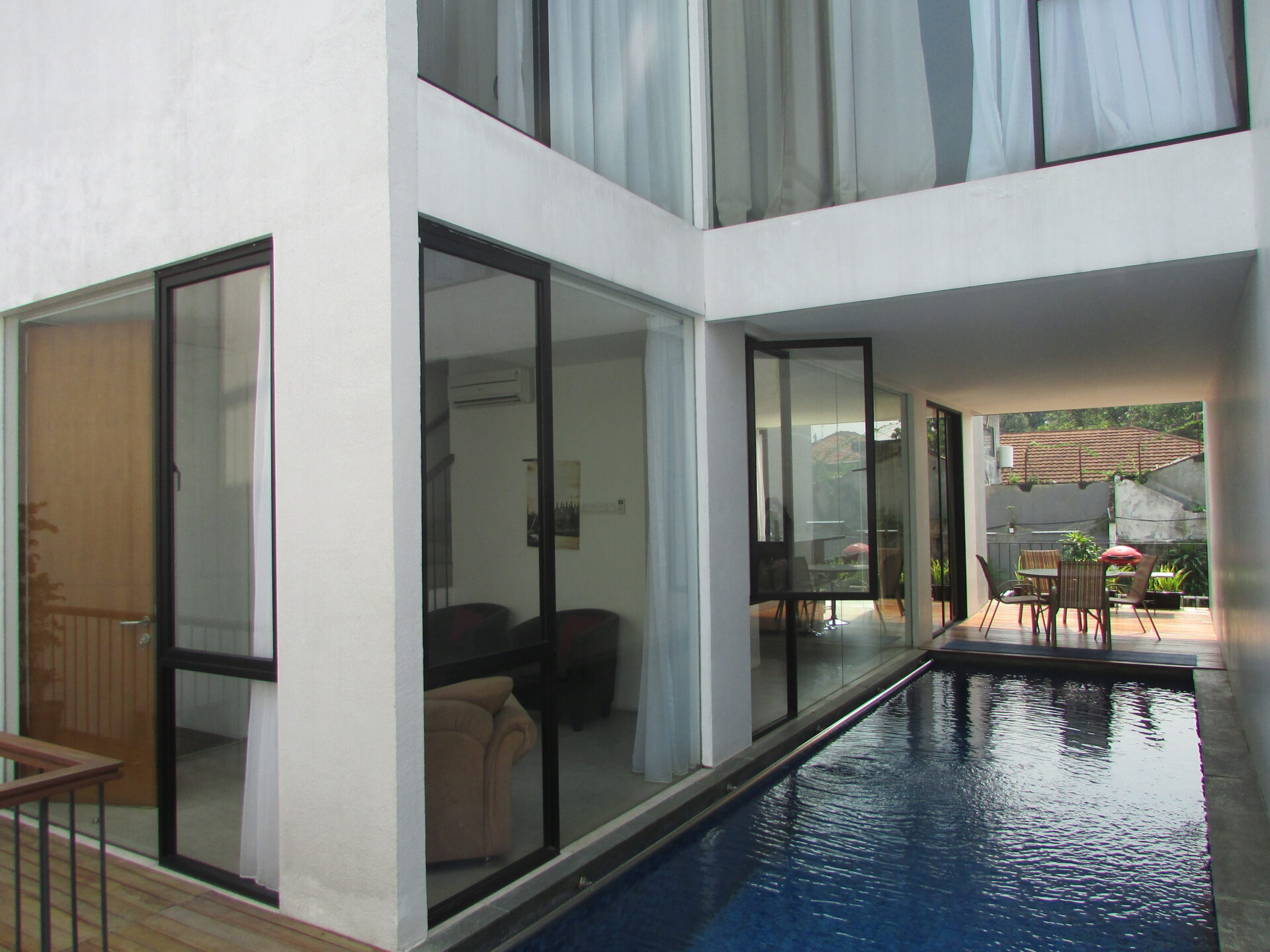 A 3 storey, 3 bedroom, compound house located in Kemang, Jakarta with 3 bathrooms and a pool.