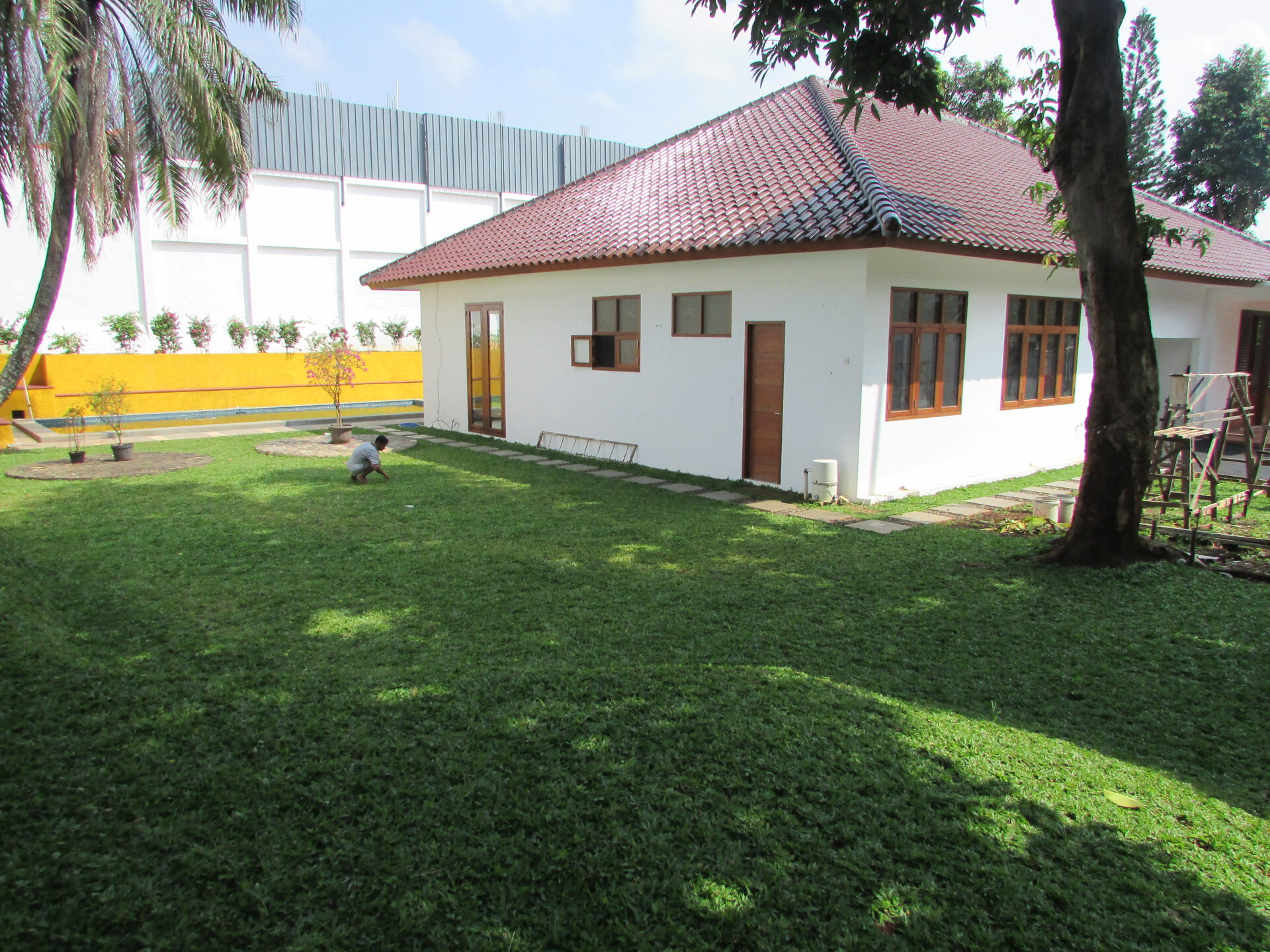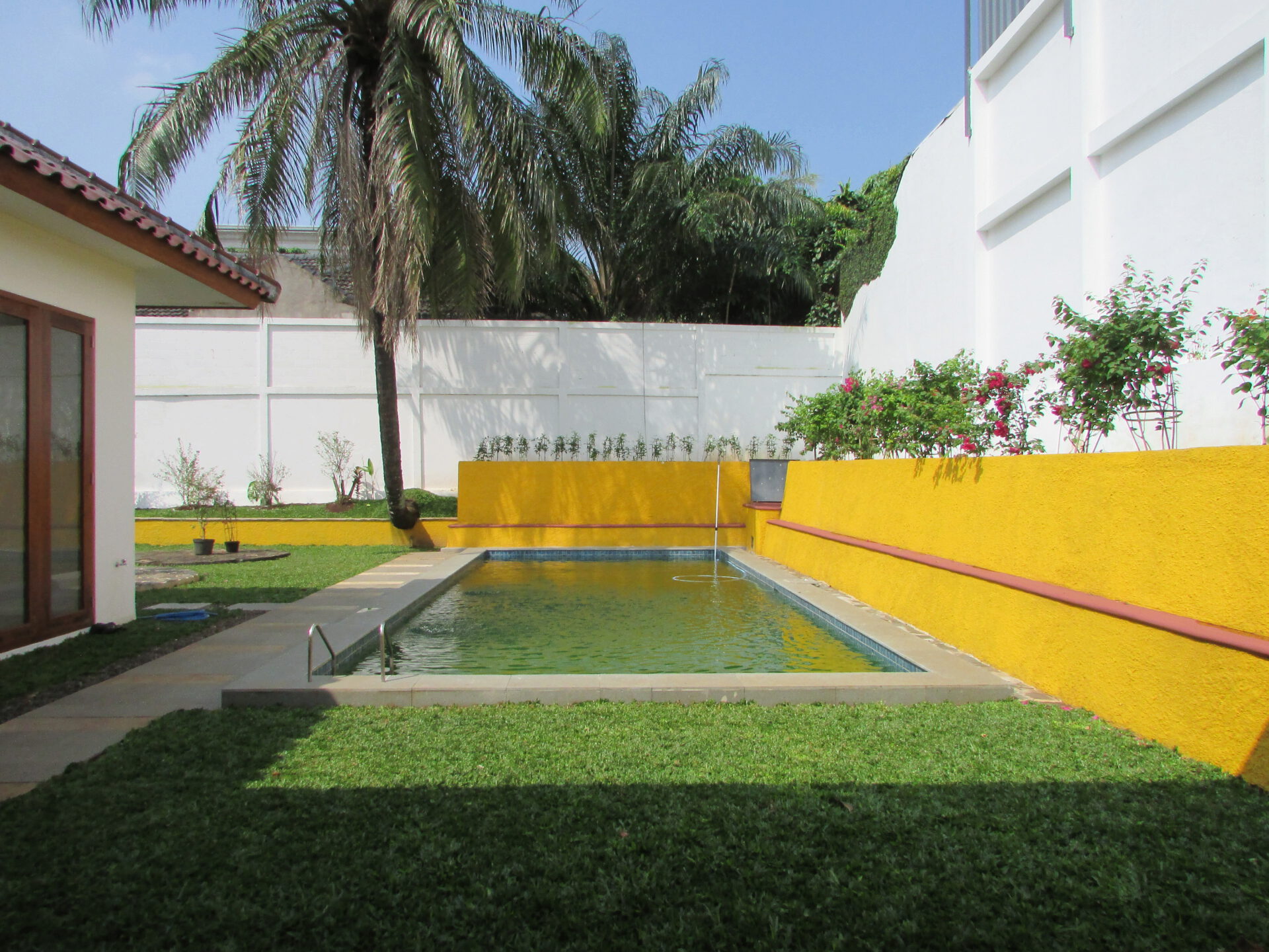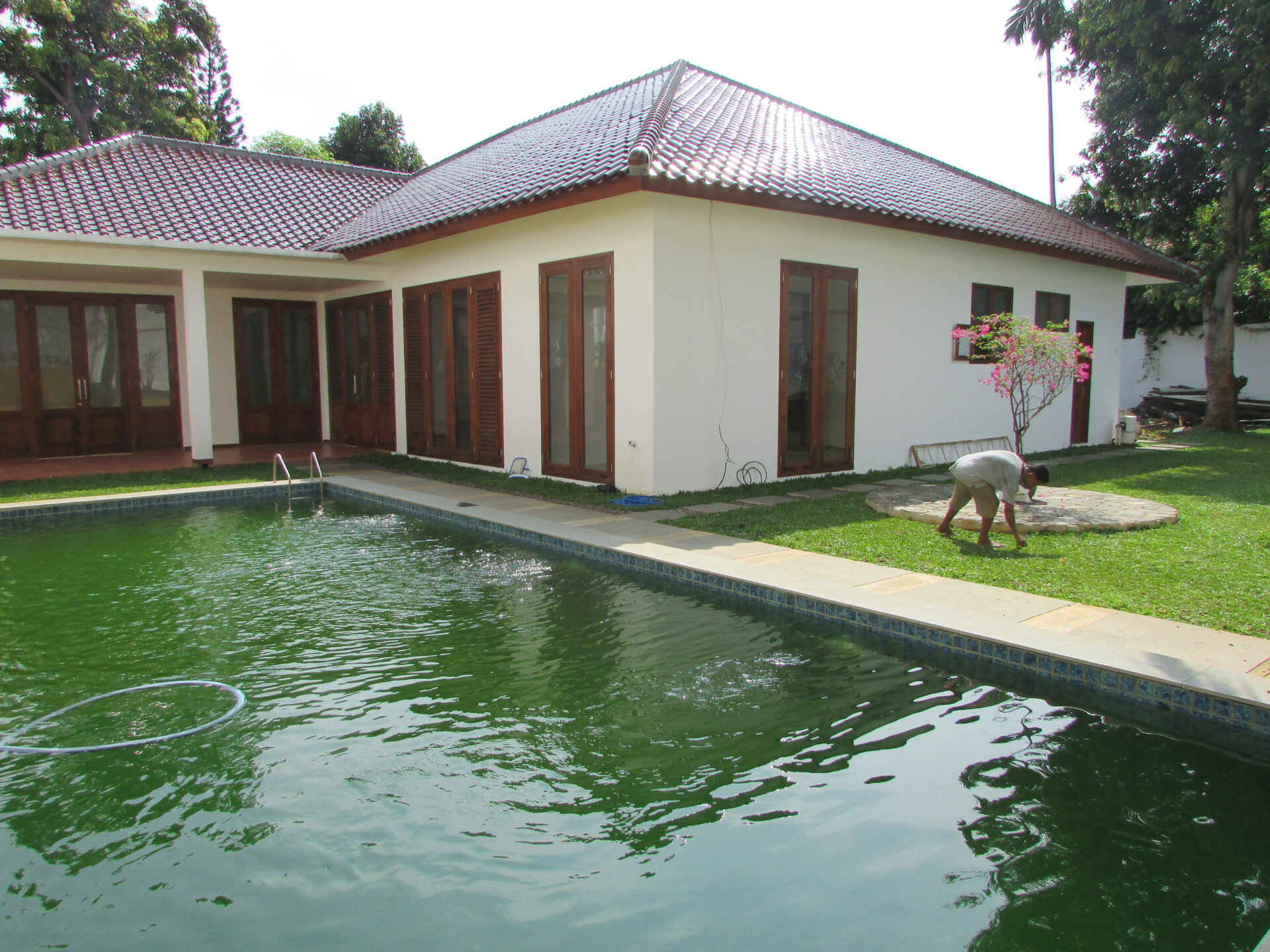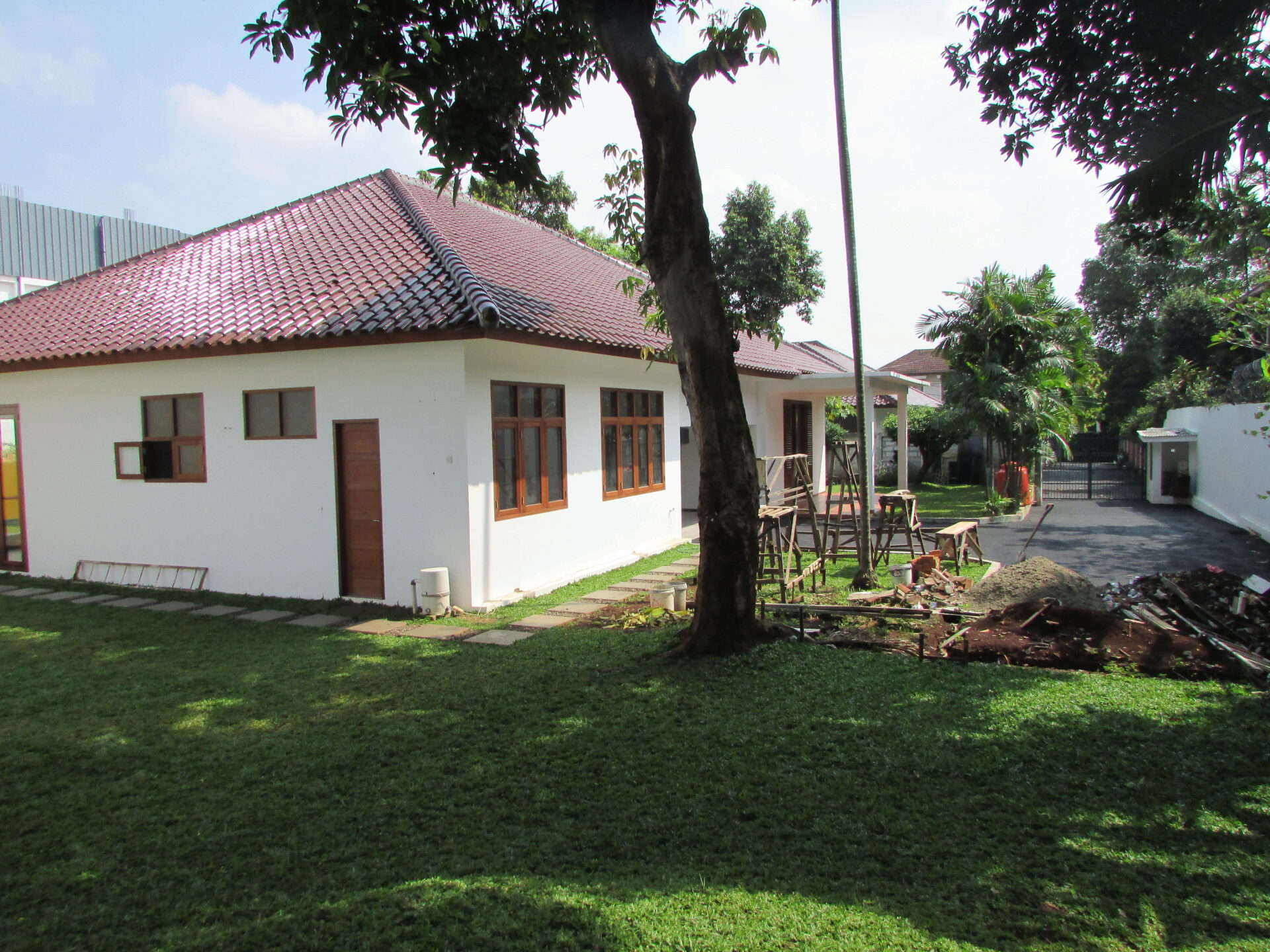 A 1 storey, 4 bedroom, compound house located in Kemang, Jakarta with 3 bathrooms, a pool and a yard.