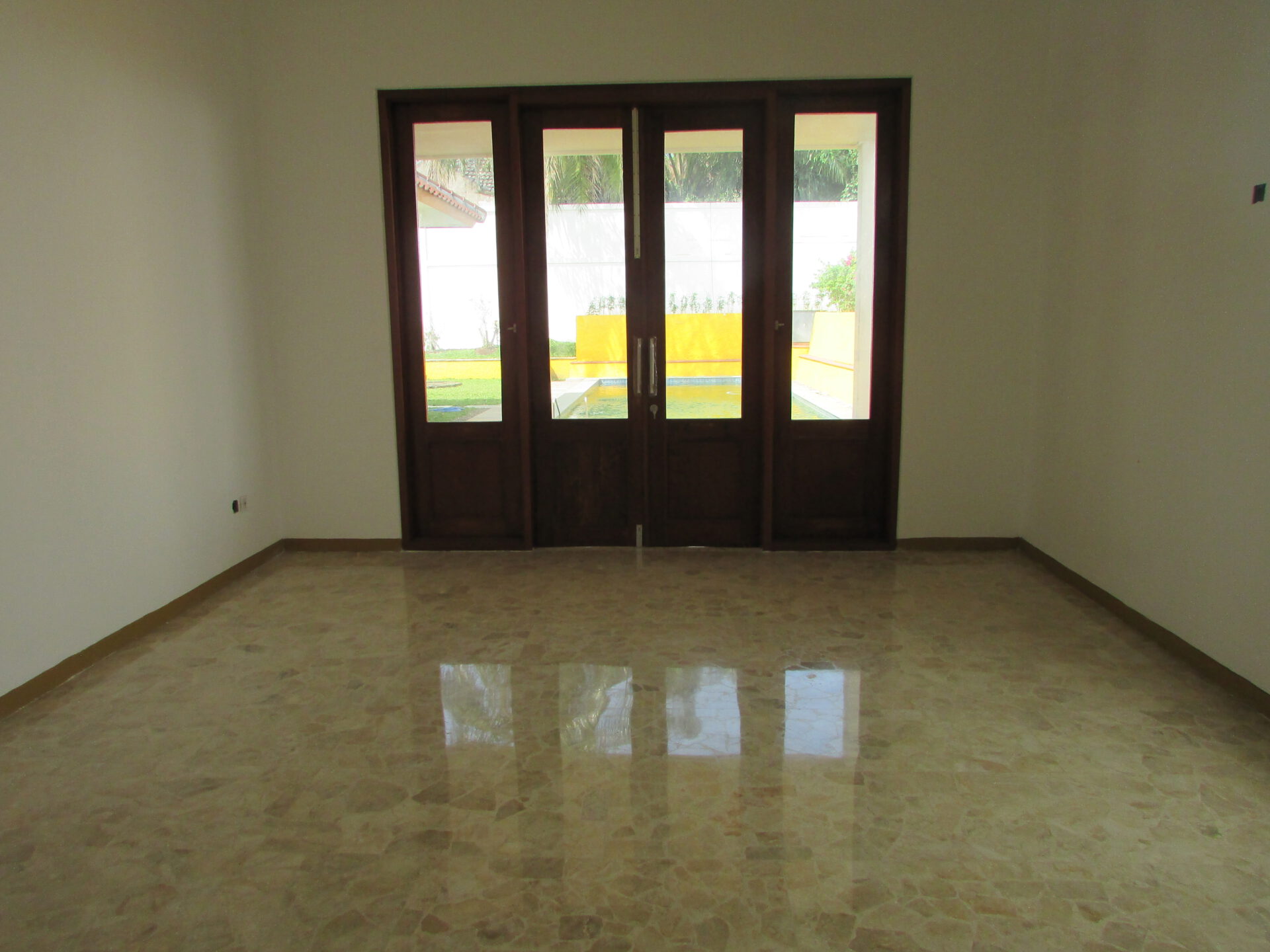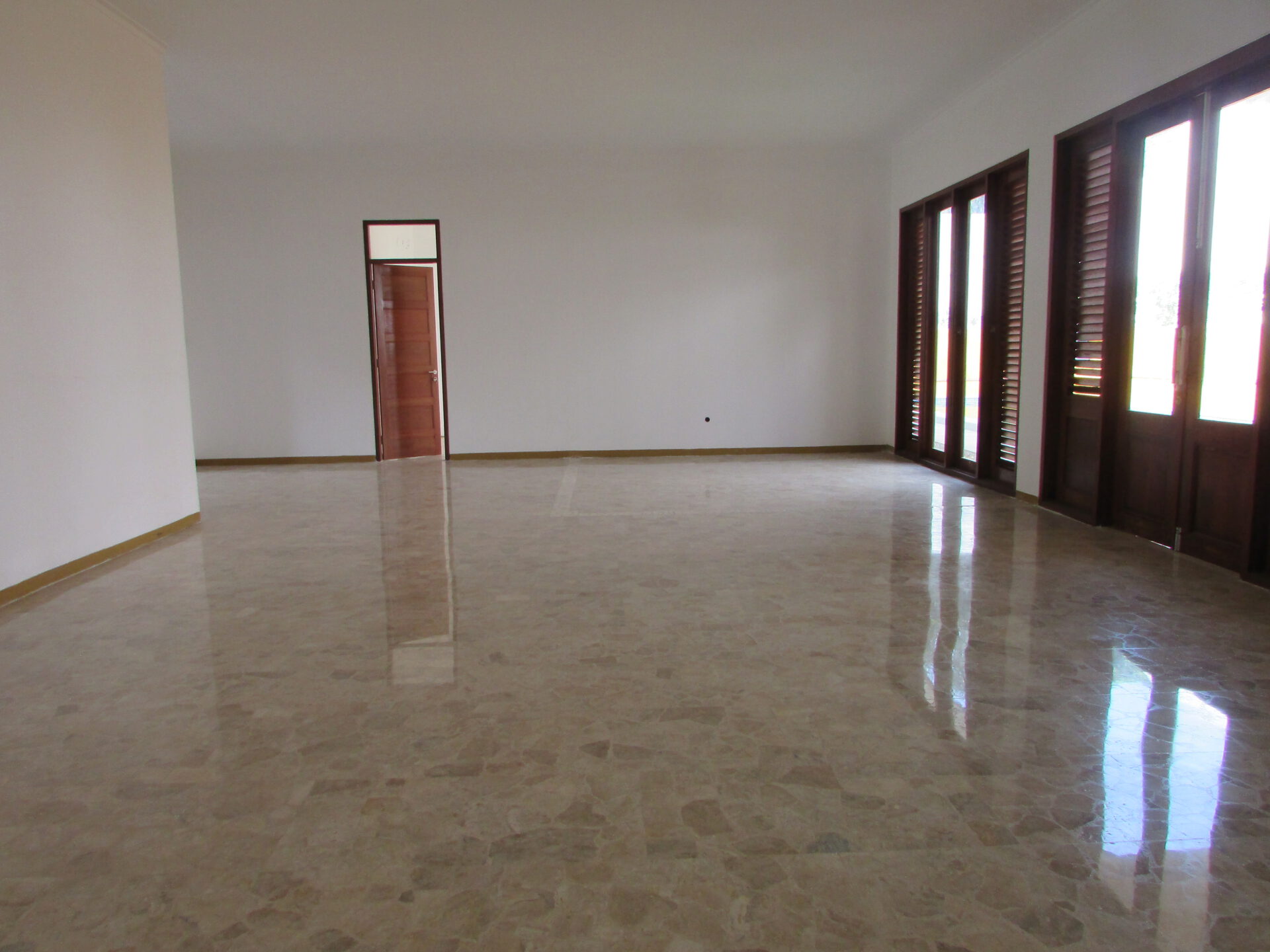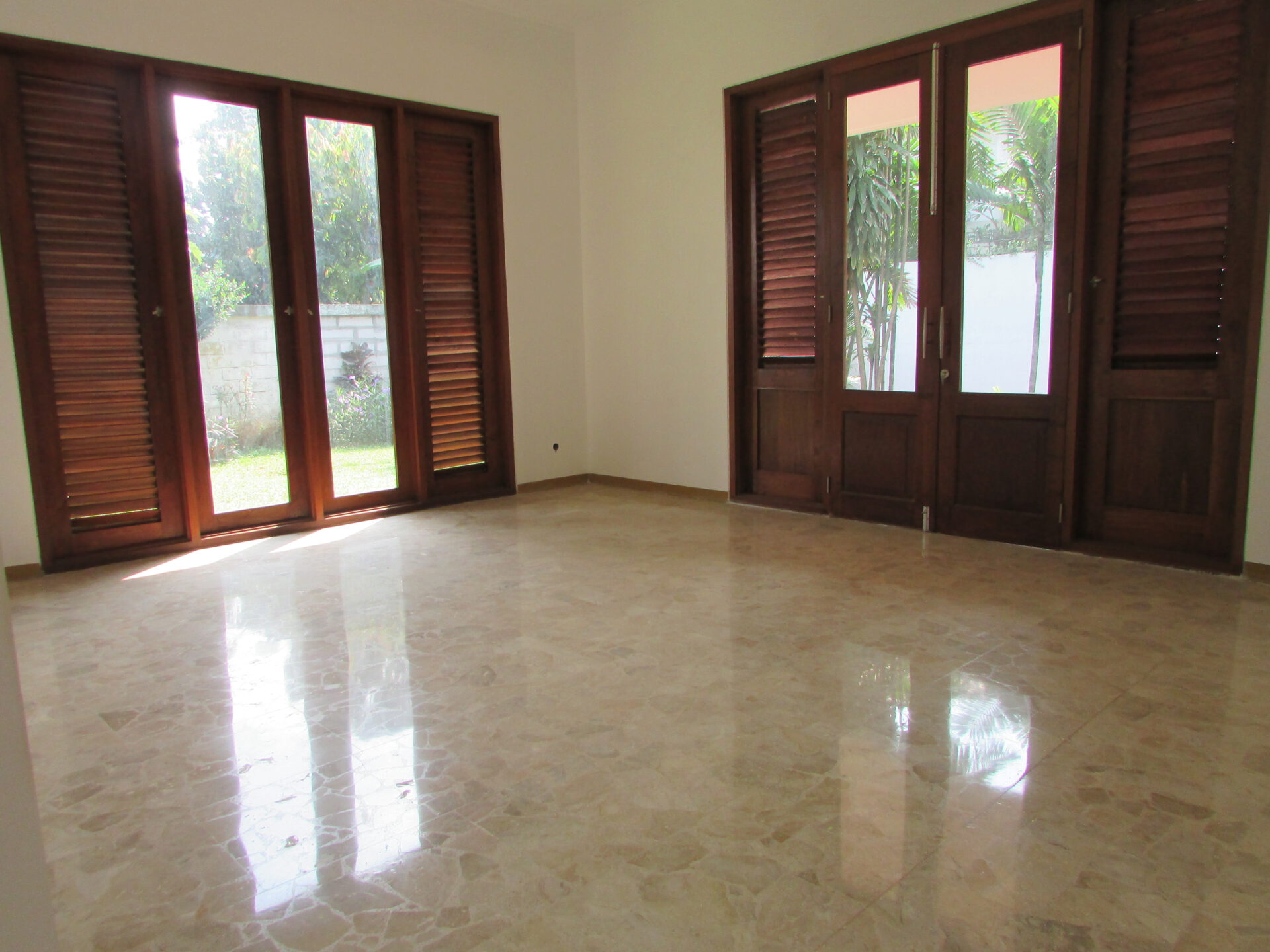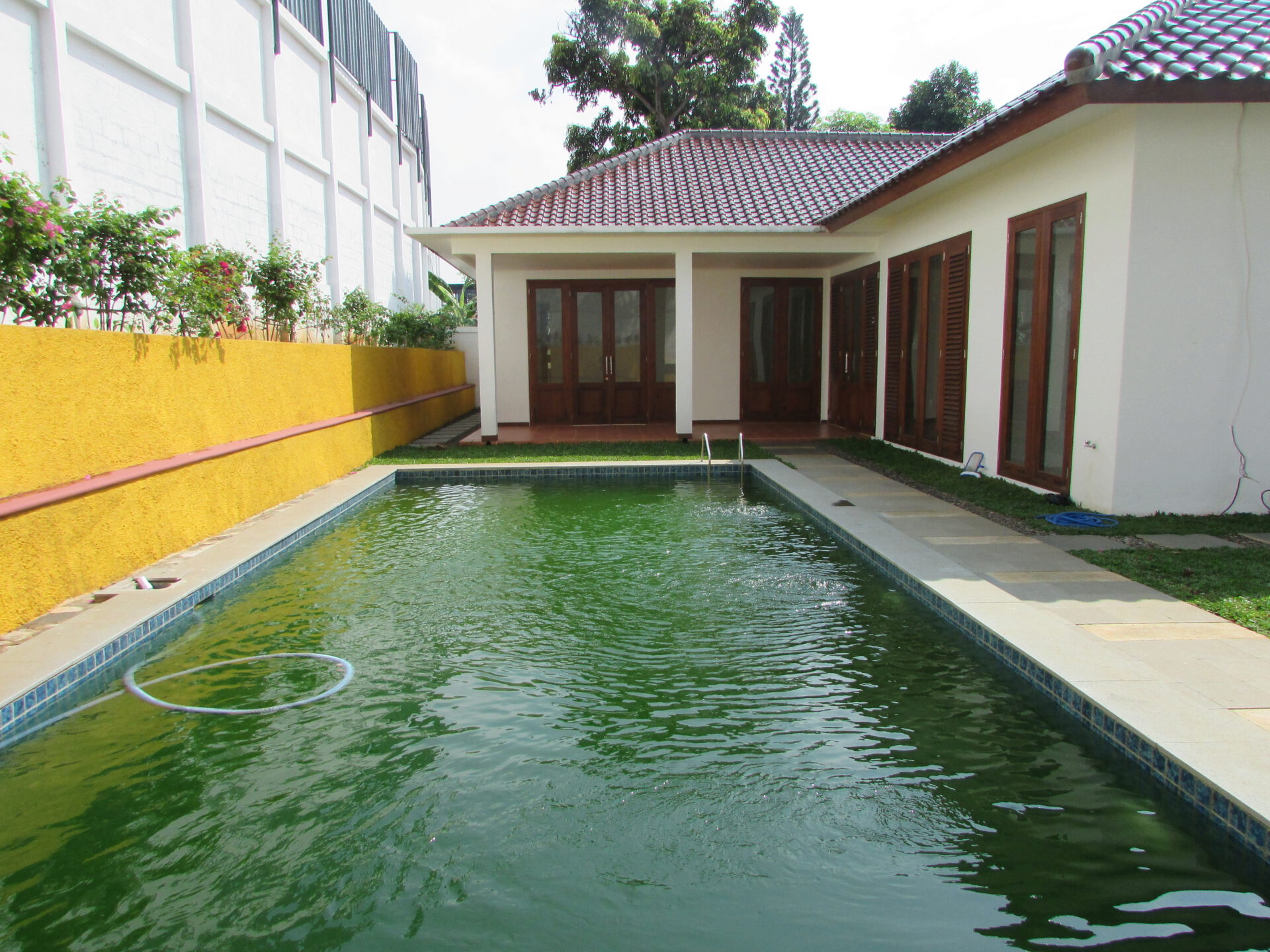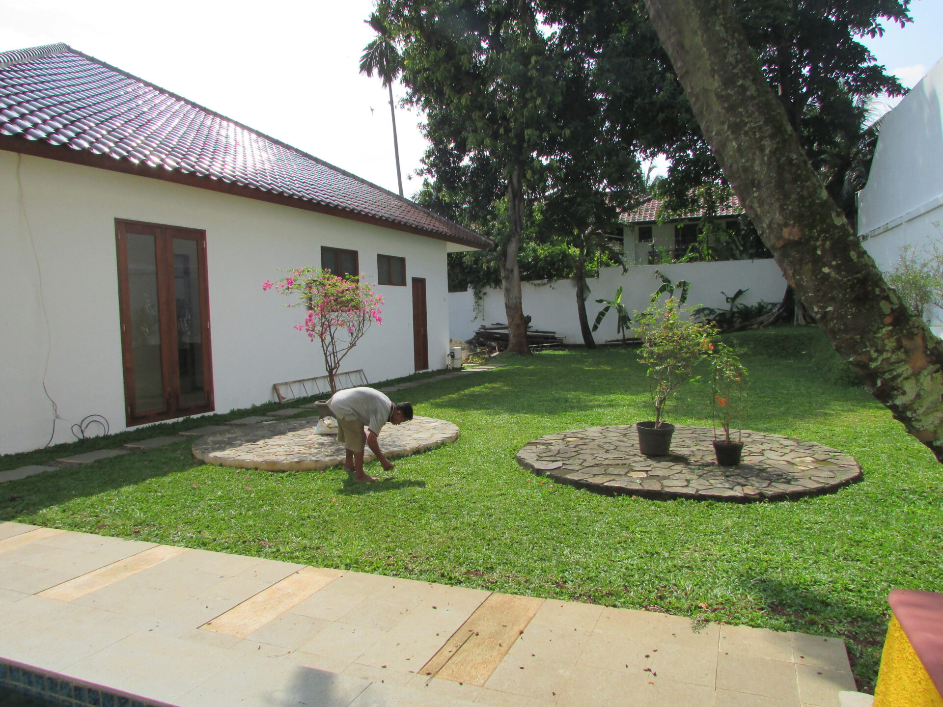 A 1 storey, 4 bedroom, compound house located in Kemang, Jakarta with 3 bathrooms, a pool and a yard.