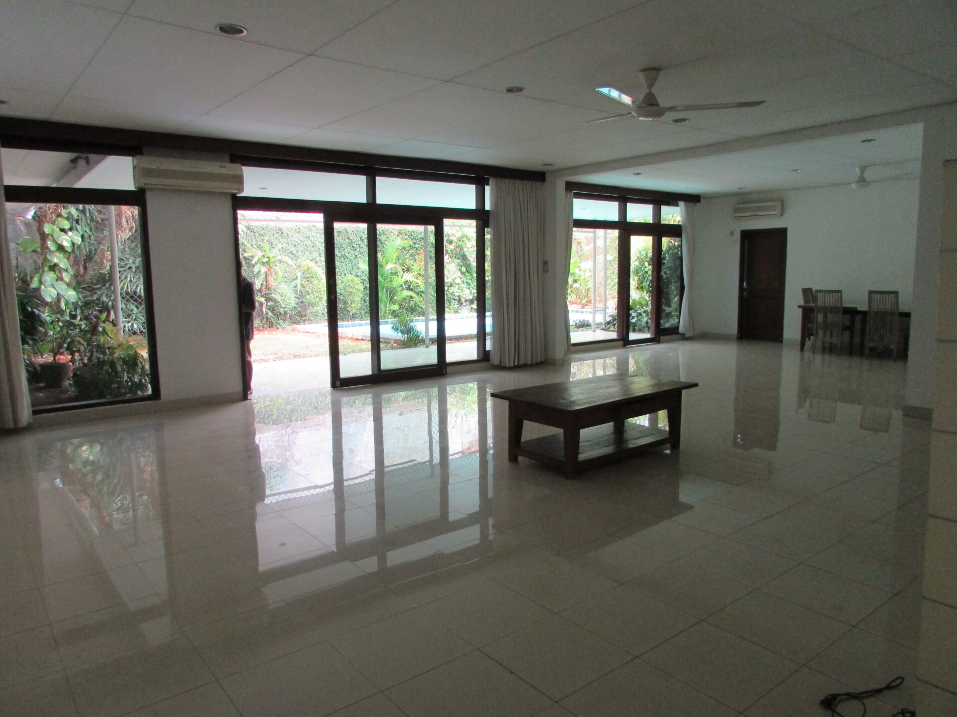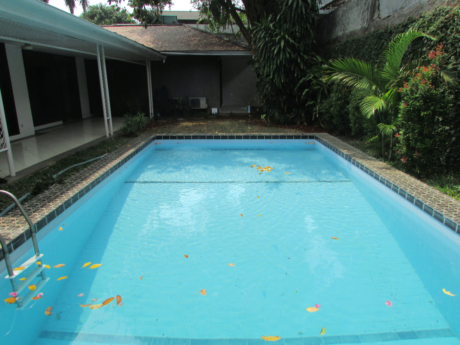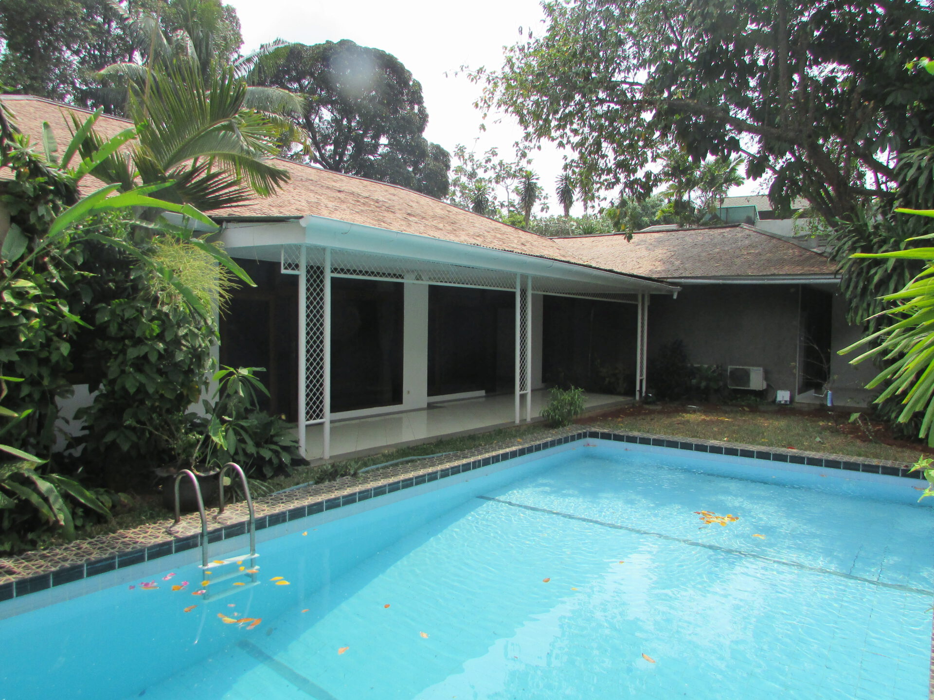 A 1 storey, 4 bedroom, stand alone house located in Kemang, Jakarta with 3 bathrooms, 1 study, a pool and a yard.