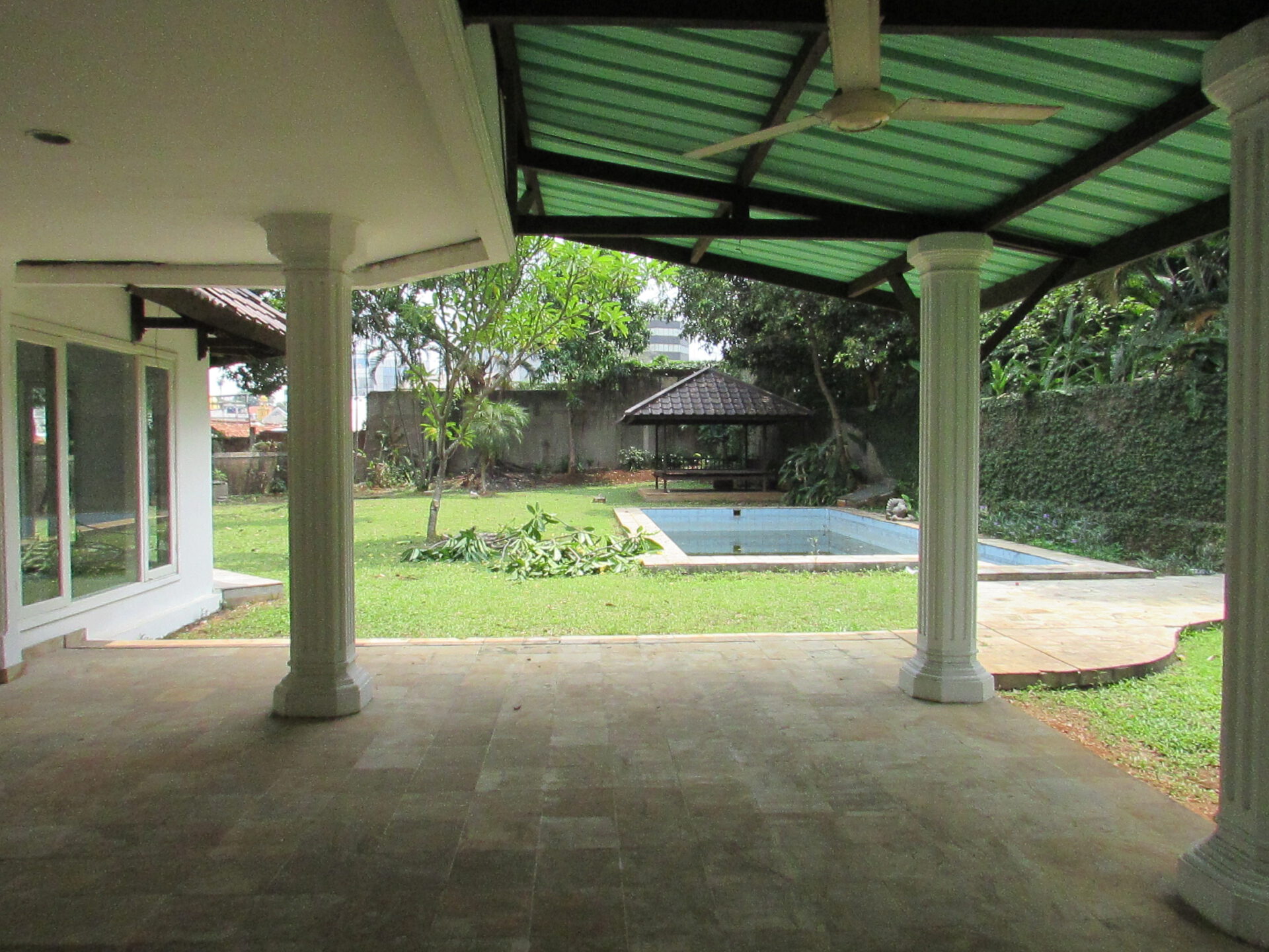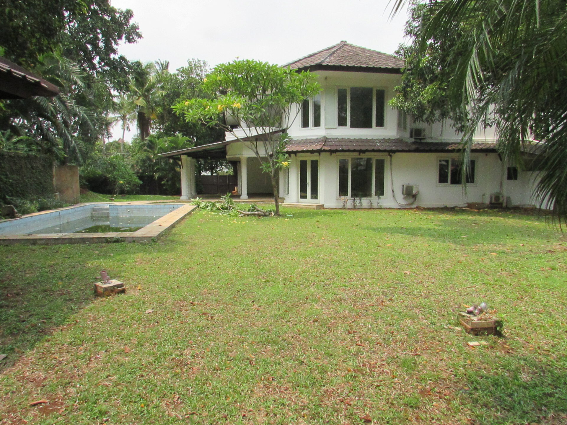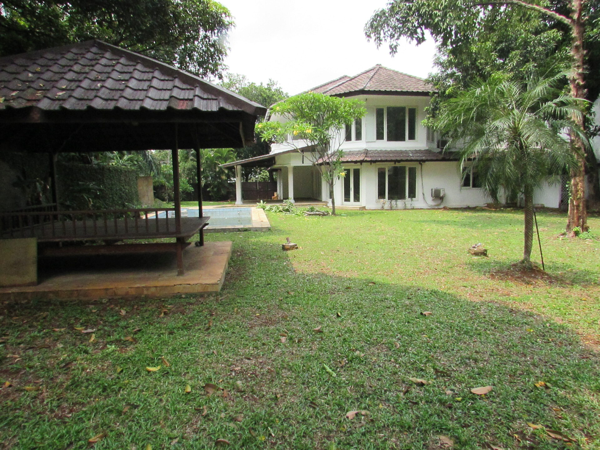 A 2 storey, 4 bedroom, compound house located in Pejaten, Jakarta with 4 bathrooms, a pool and a yard.