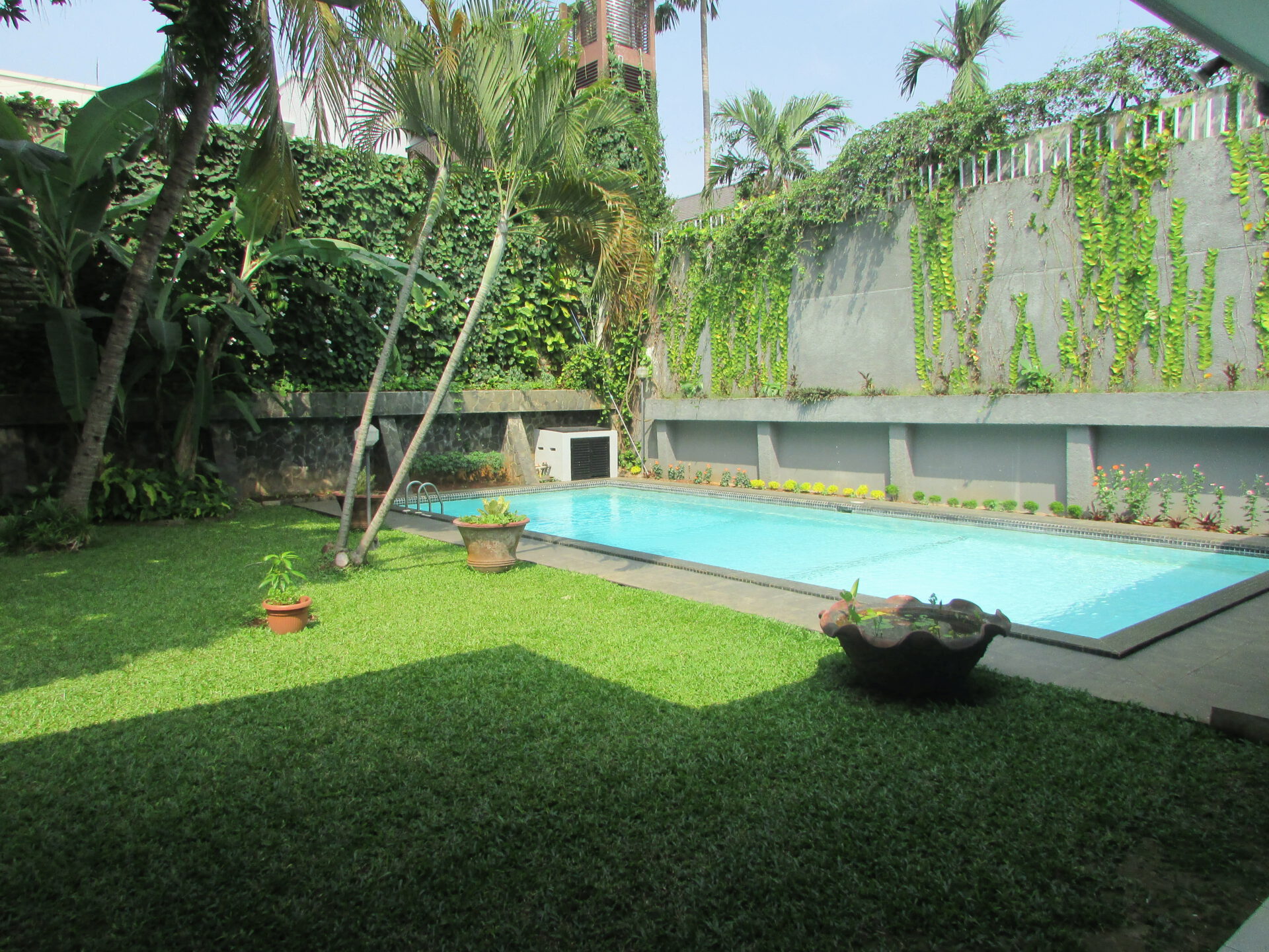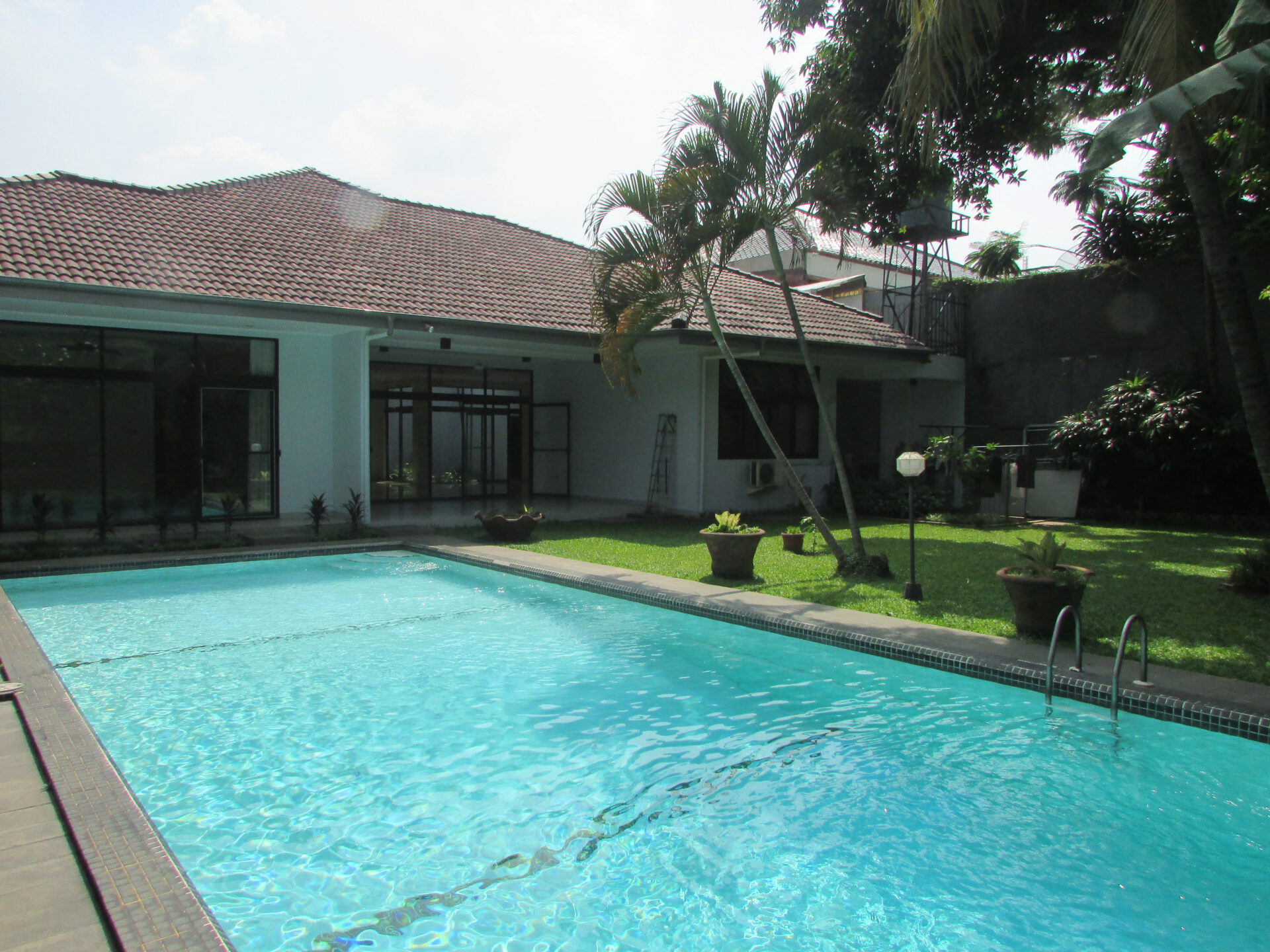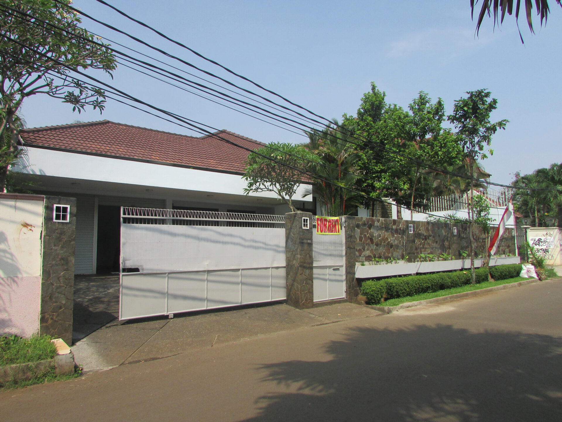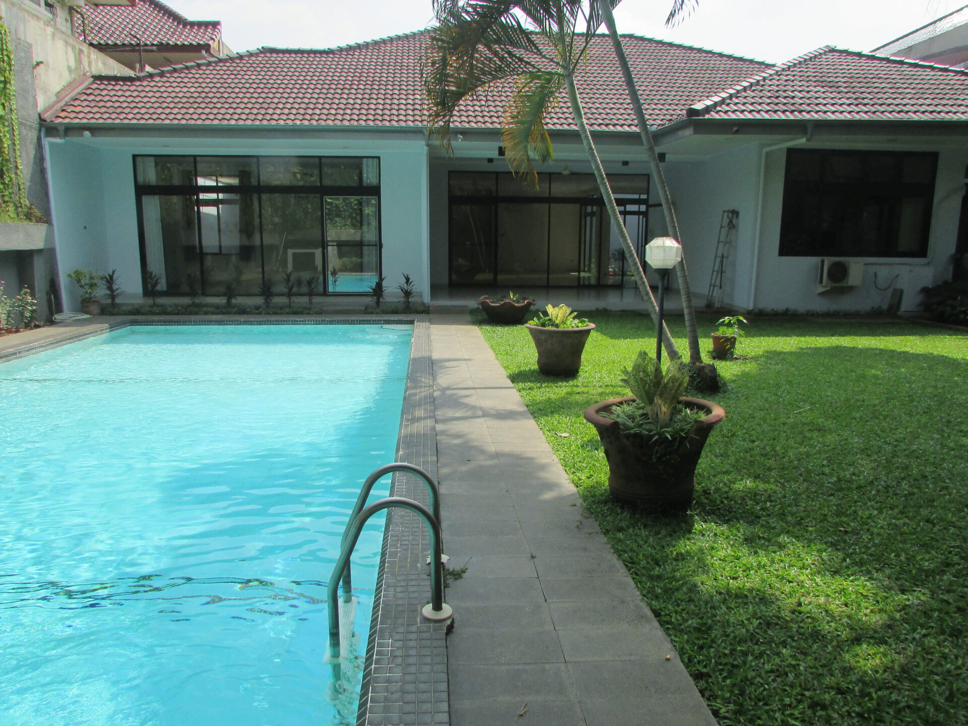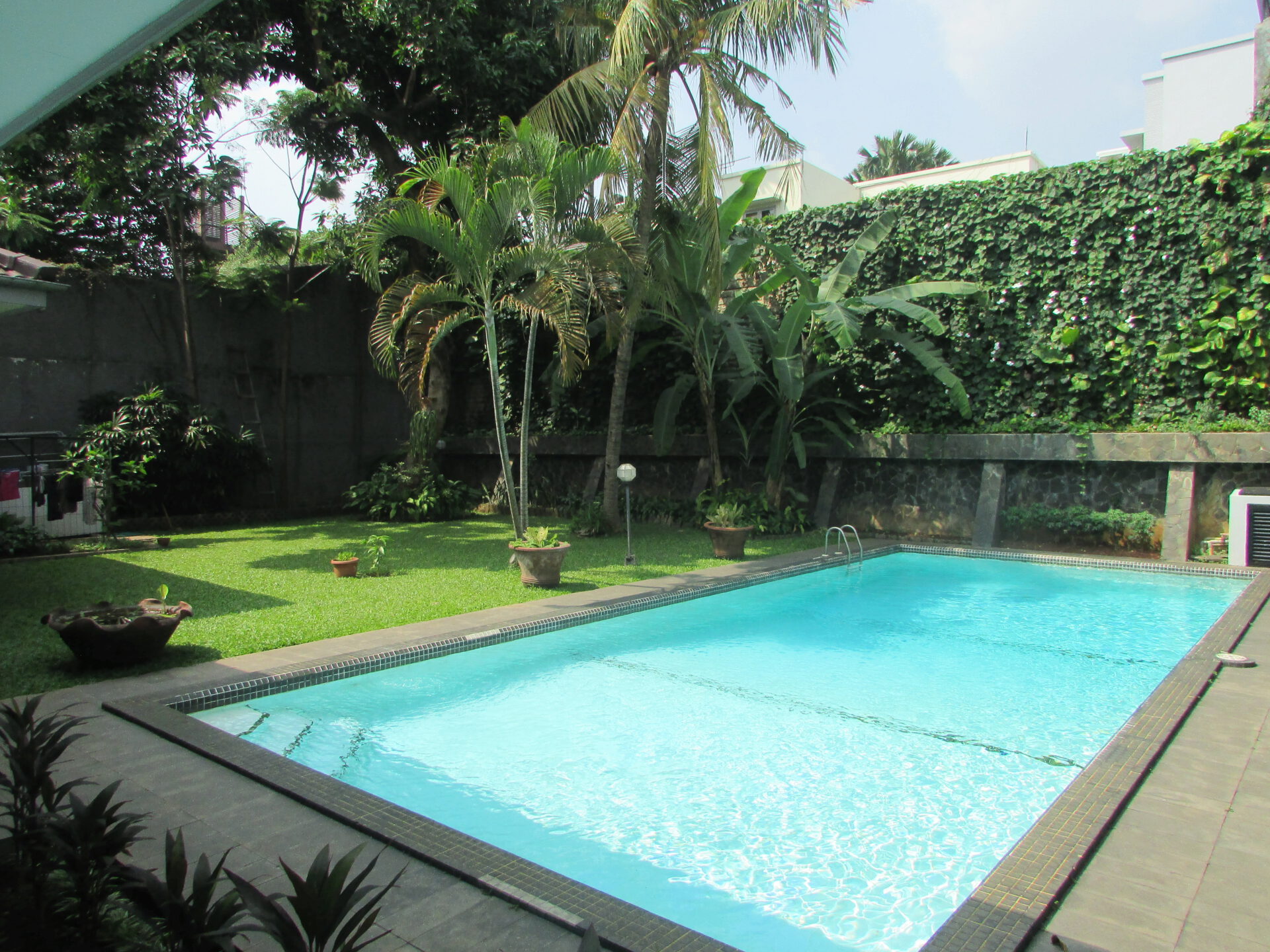 A 1 storey, 4 bedroom, stand alone house located in Pejaten, Jakarta with 4 bathrooms, 1 study, a pool and a yard.