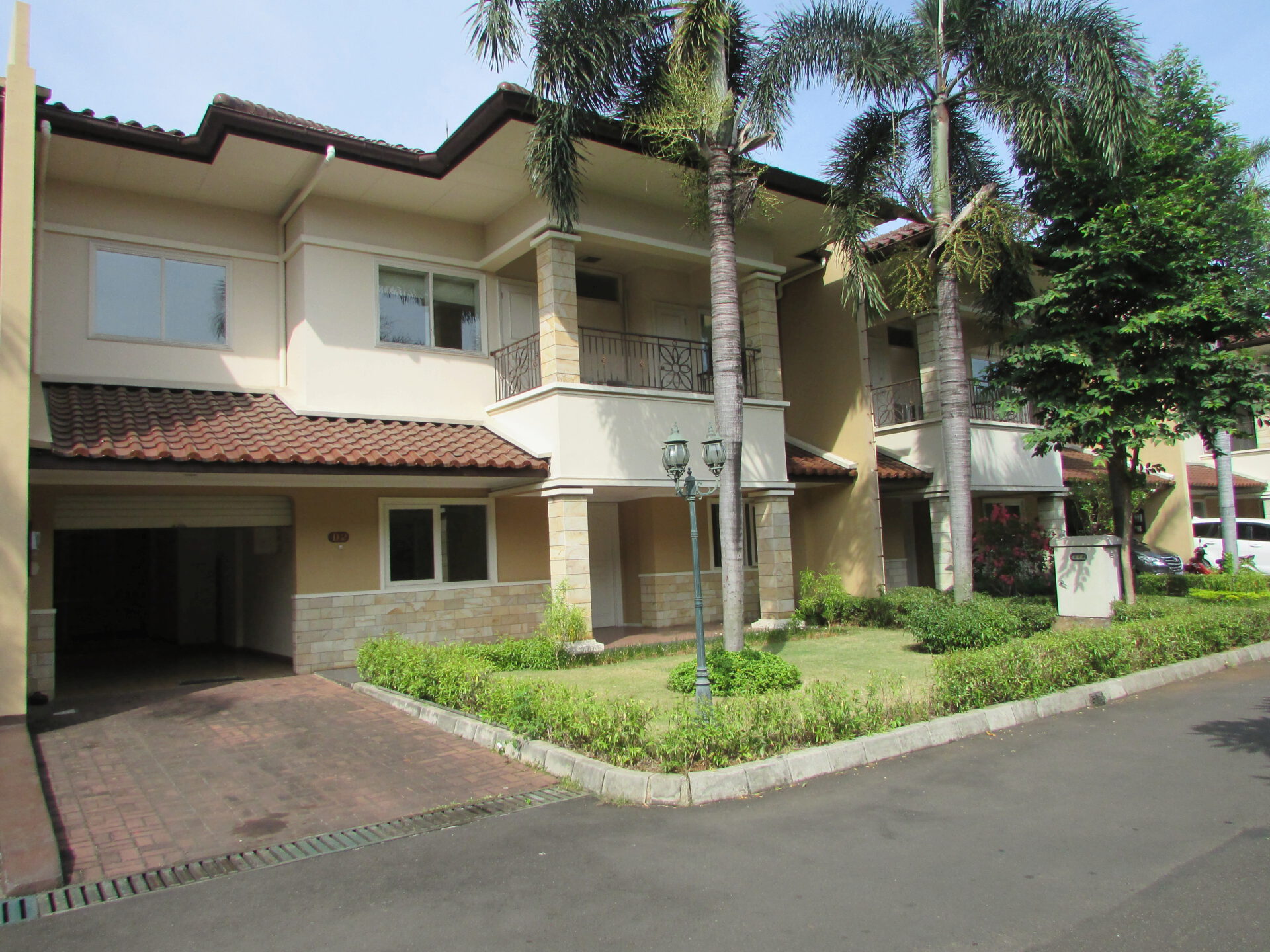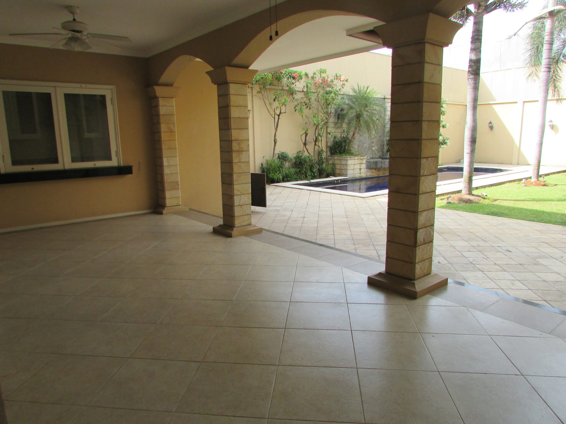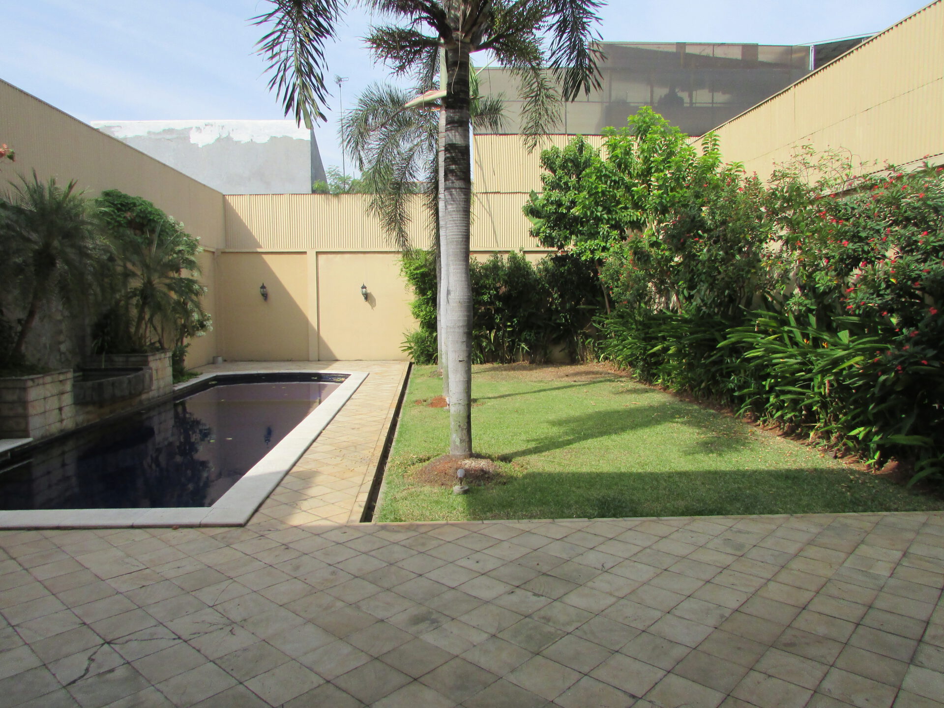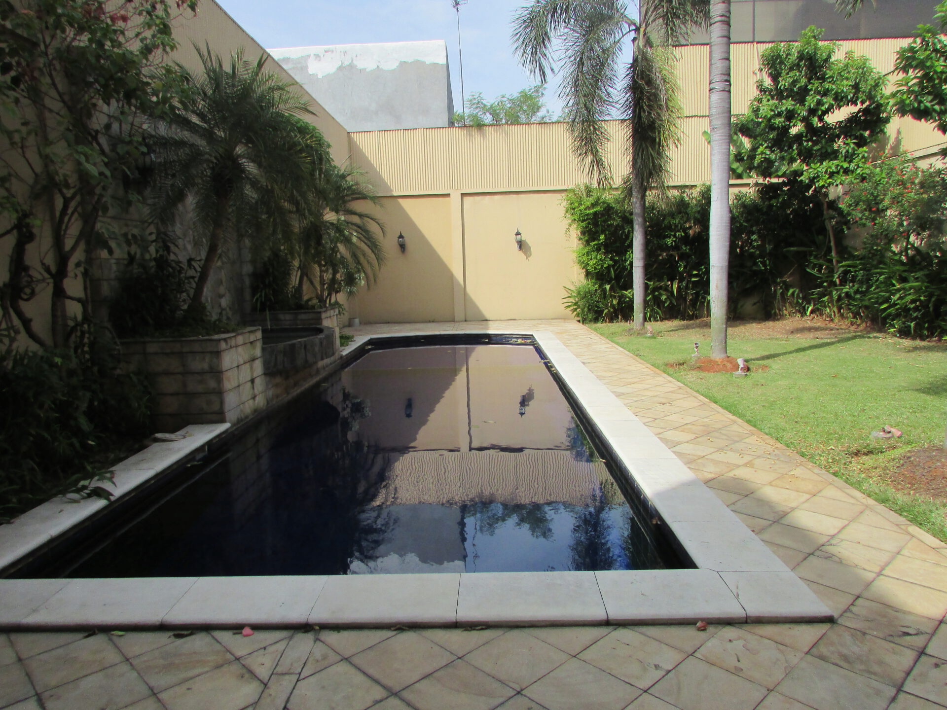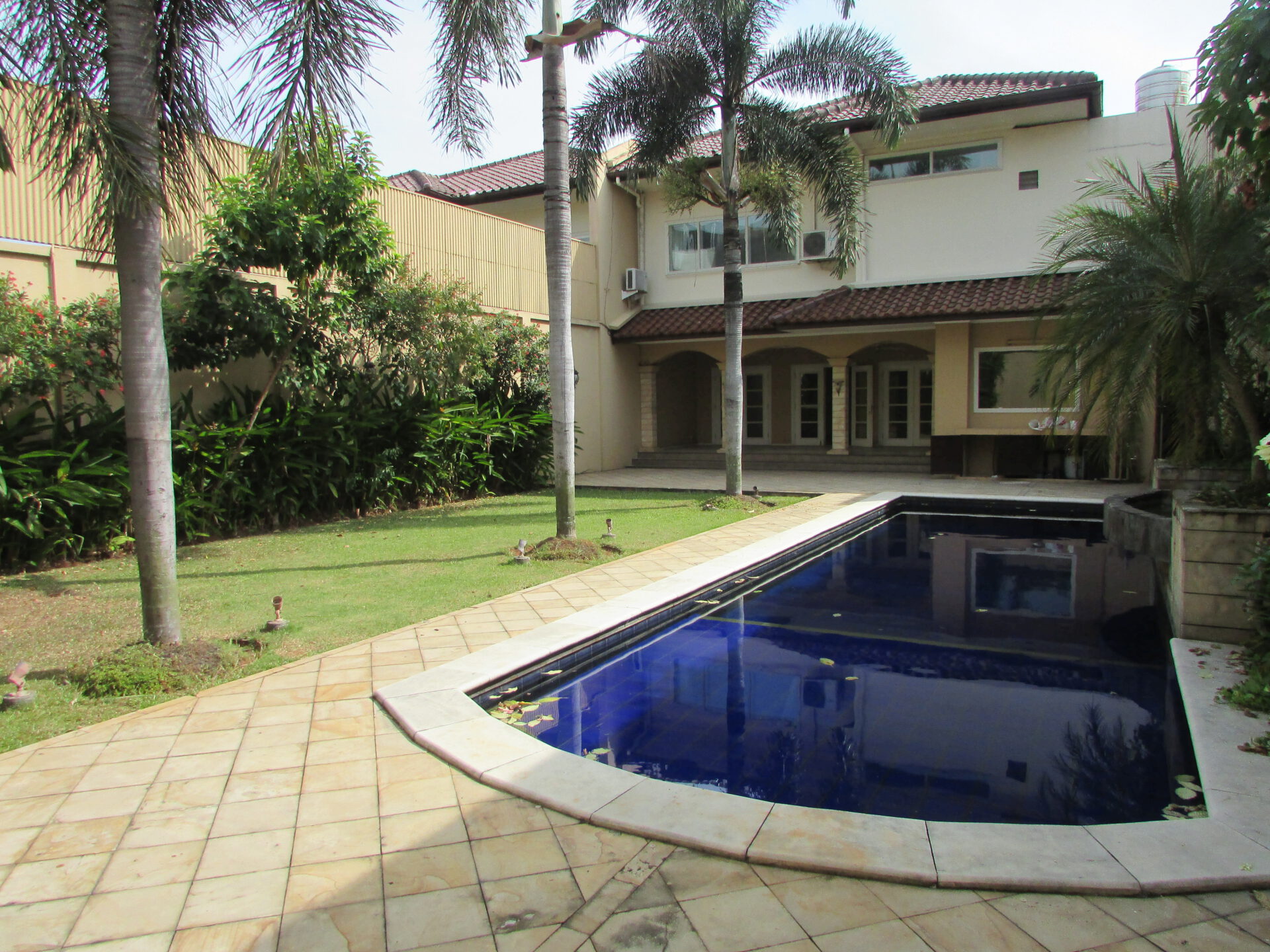A 2 storey, 4 bedroom, compound house located in Pejaten, Jakarta with 3 bathrooms, 1 study, a pool and a yard.