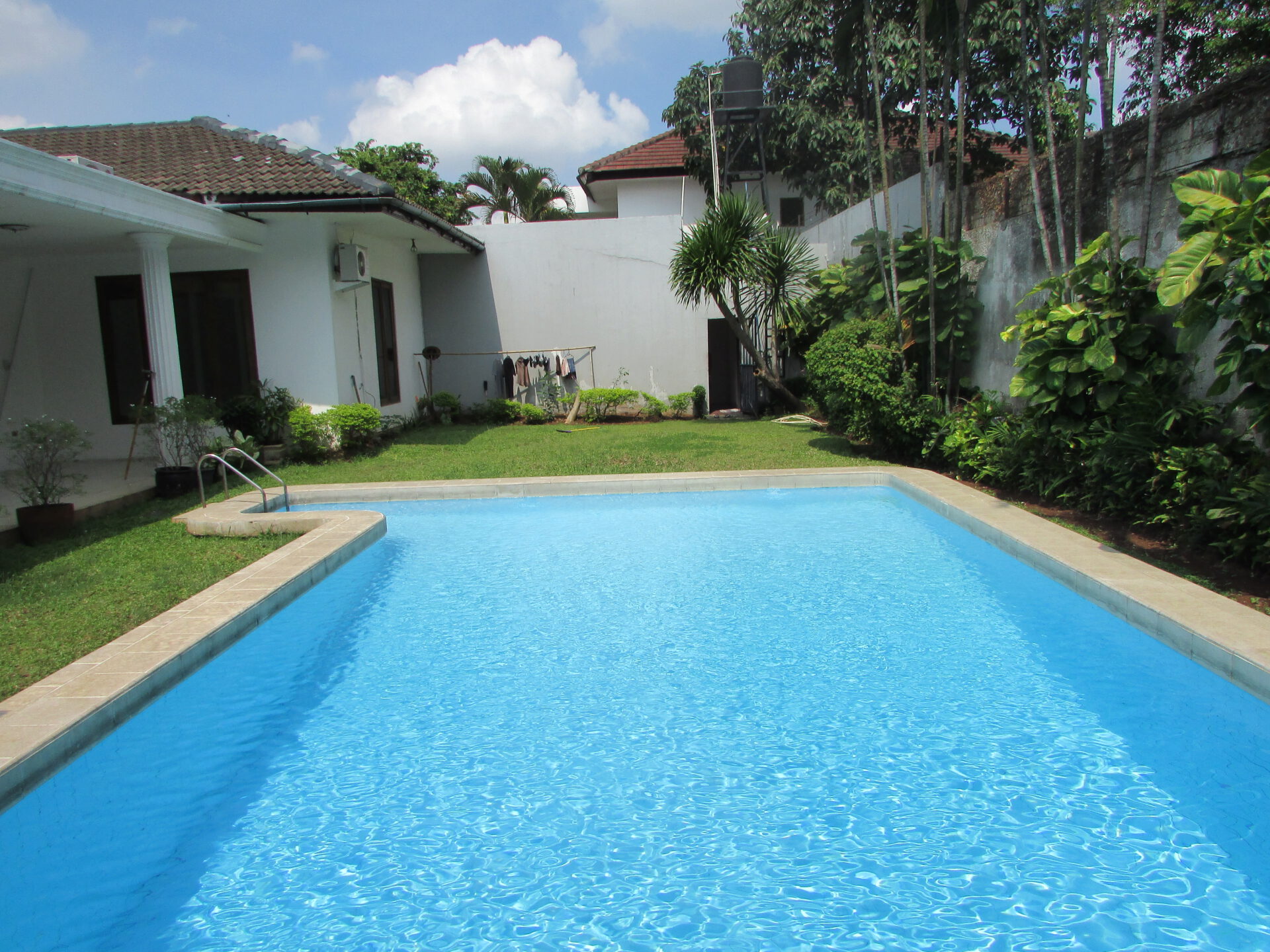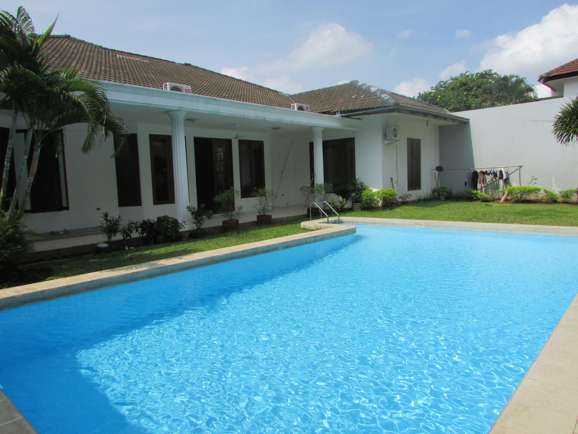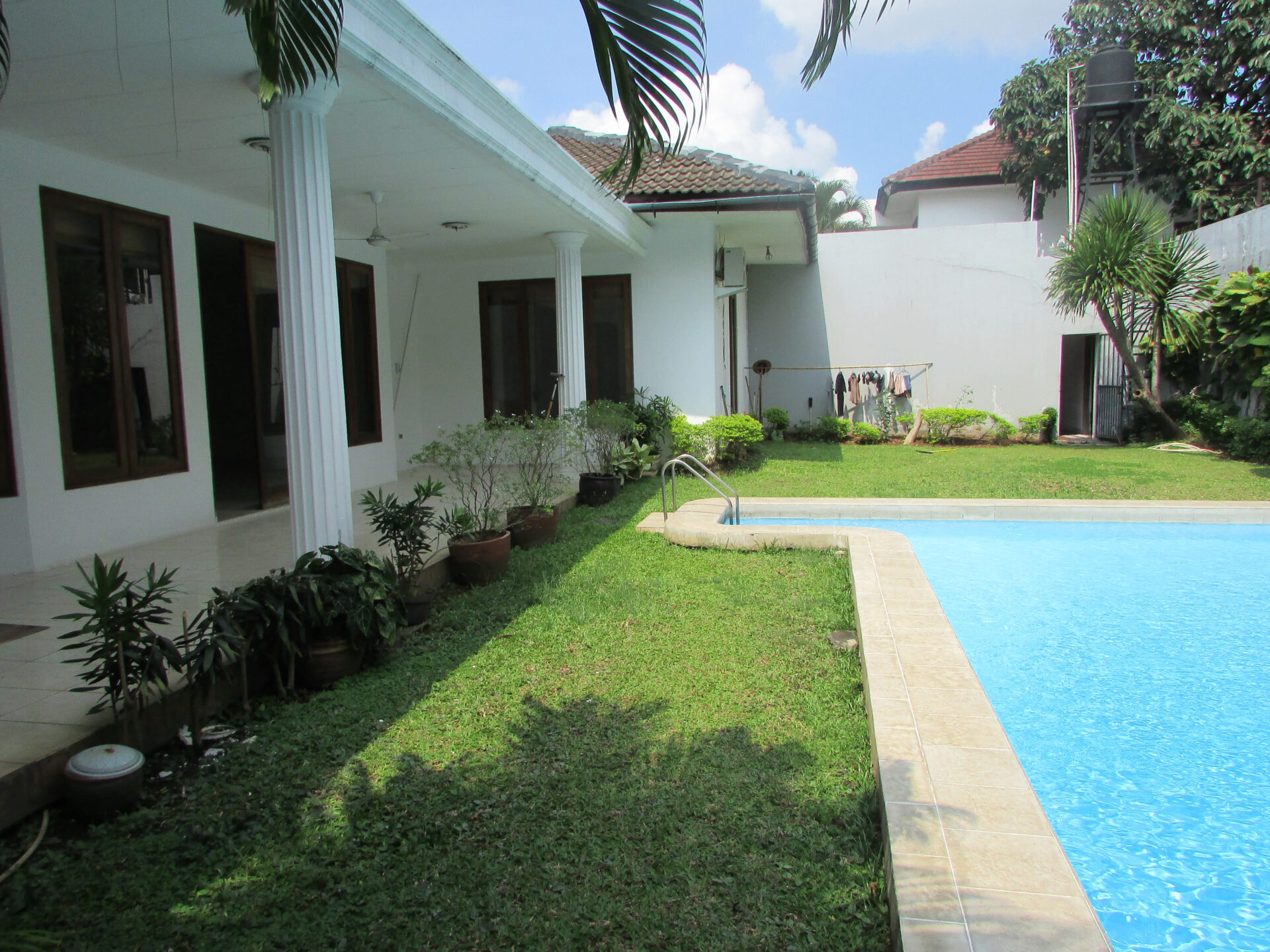 A 1 storey, 4 bedroom, compound house located in Pejaten, Jakarta with 4 bathrooms, a pool and a yard.