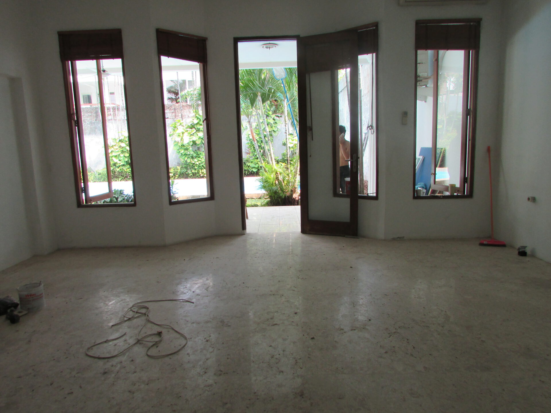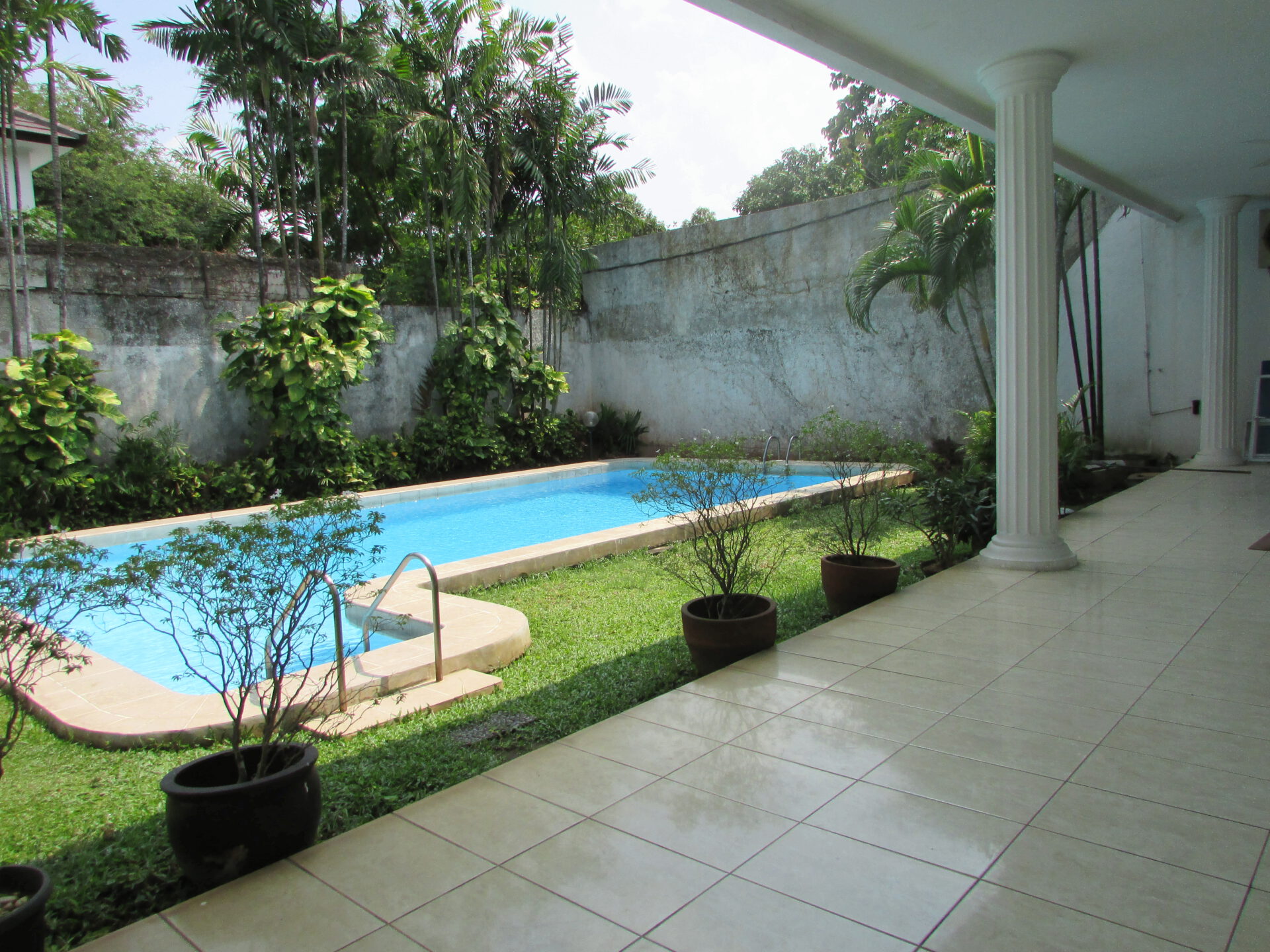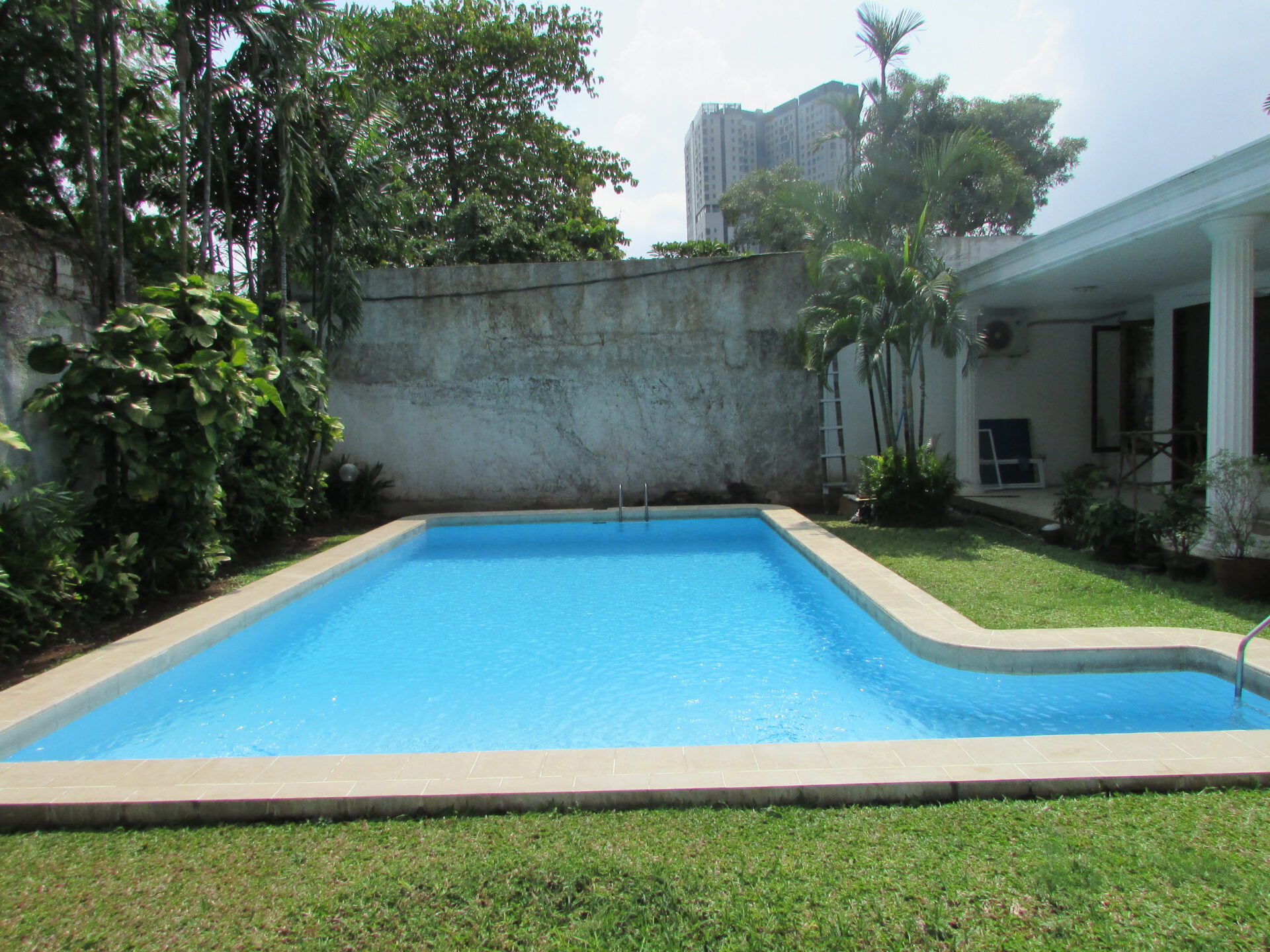 A 1 storey, 4 bedroom, compound house located in Pejaten, Jakarta with 4 bathrooms, a pool and a yard.