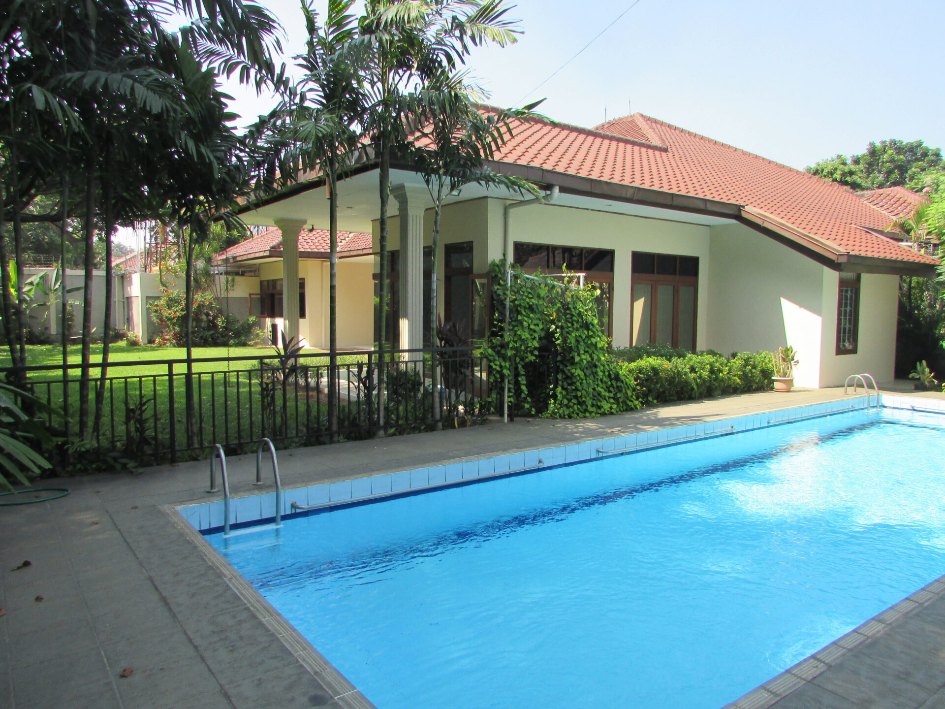 A 1 storey, 5 bedroom, compound house located in Pejaten, Jakarta with 4 bathrooms, a pool and a yard.