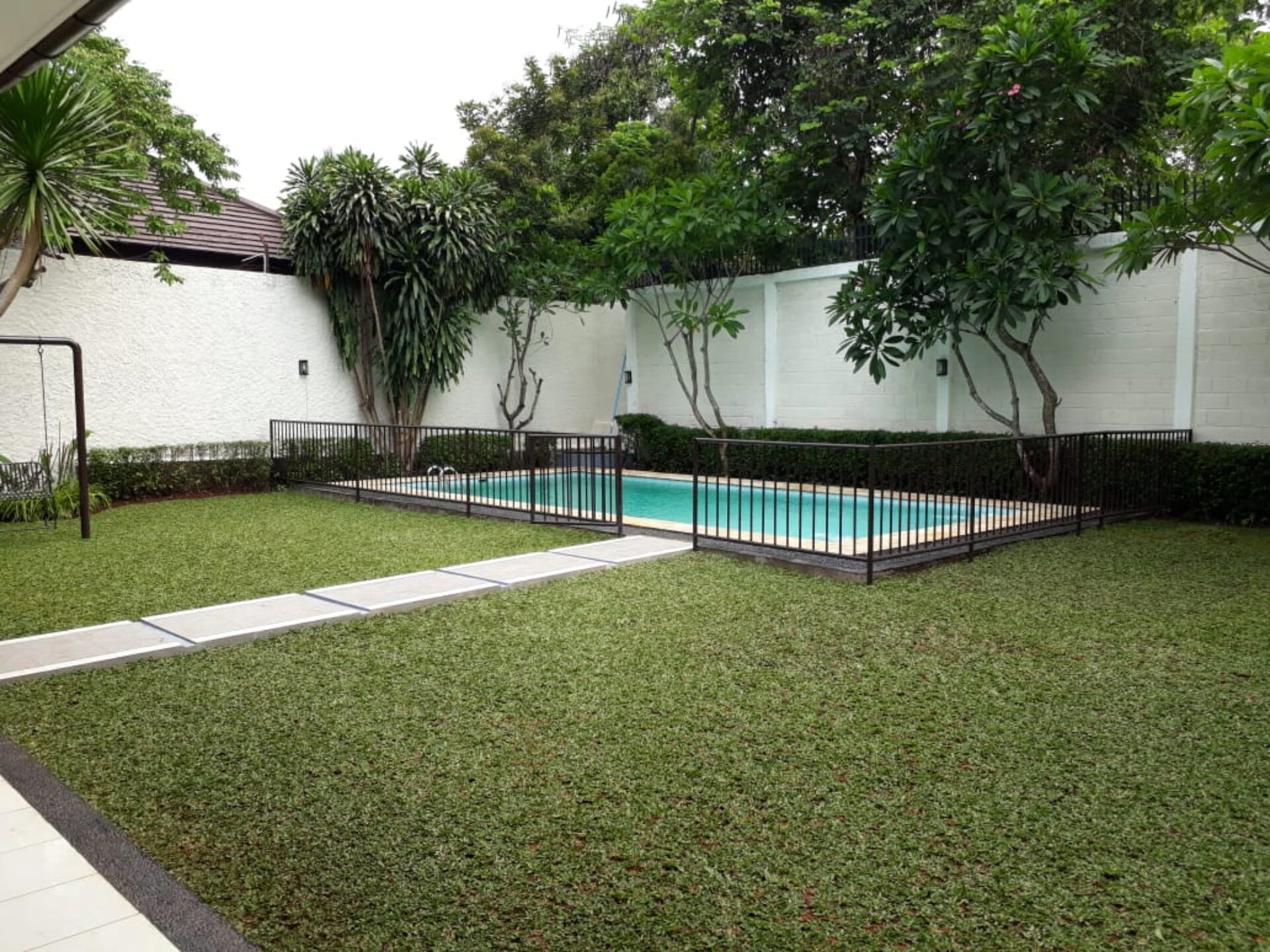 A 1 storey, 4 bedroom, stand alone house located in Pejaten, Jakarta with 3 bathrooms, a pool and a yard.