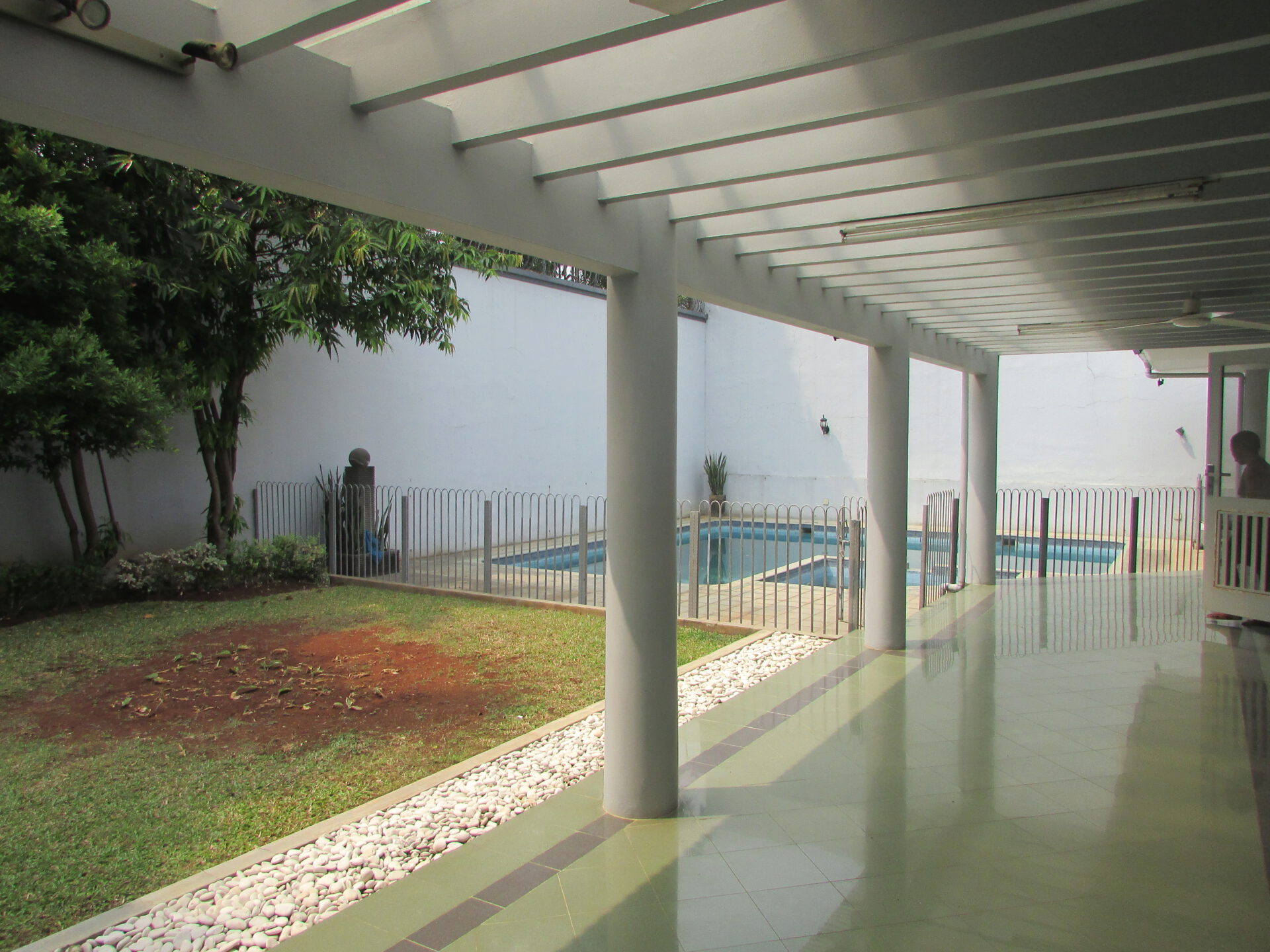 A 3 storey, 5+4 bedroom, stand alone house located in Pondok Indah, Jakarta with 3 bathrooms, a pool and a yard.